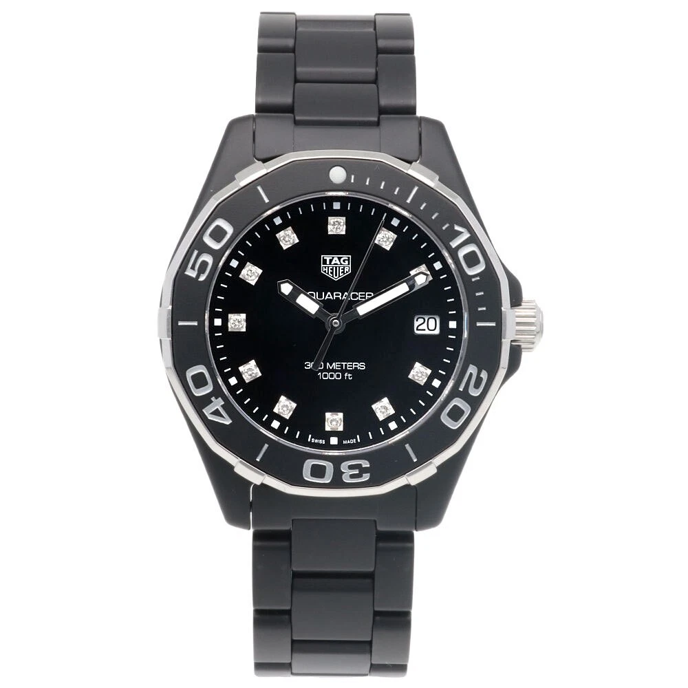 This TAG Heuer Aquaracer for women is a stunning timepiece with a sleek ceramic design and reliable quartz movement. The pre-owned condition adds character, and the seller provides helpful details about import duties. A perfect blend of luxury and practicality for any watch enthusiast!