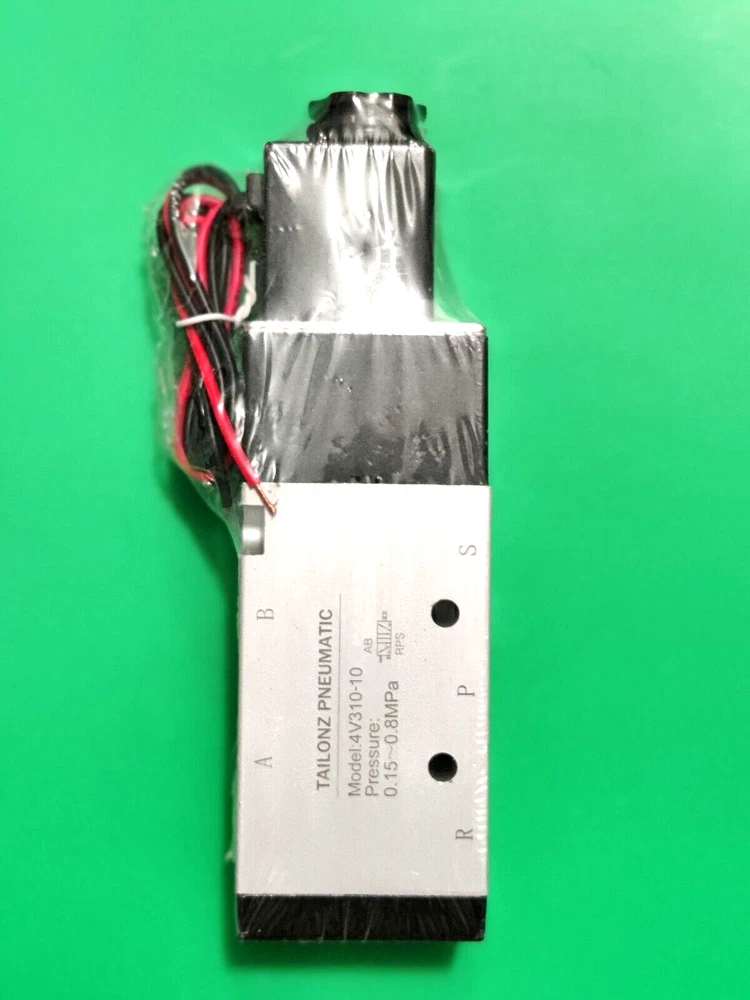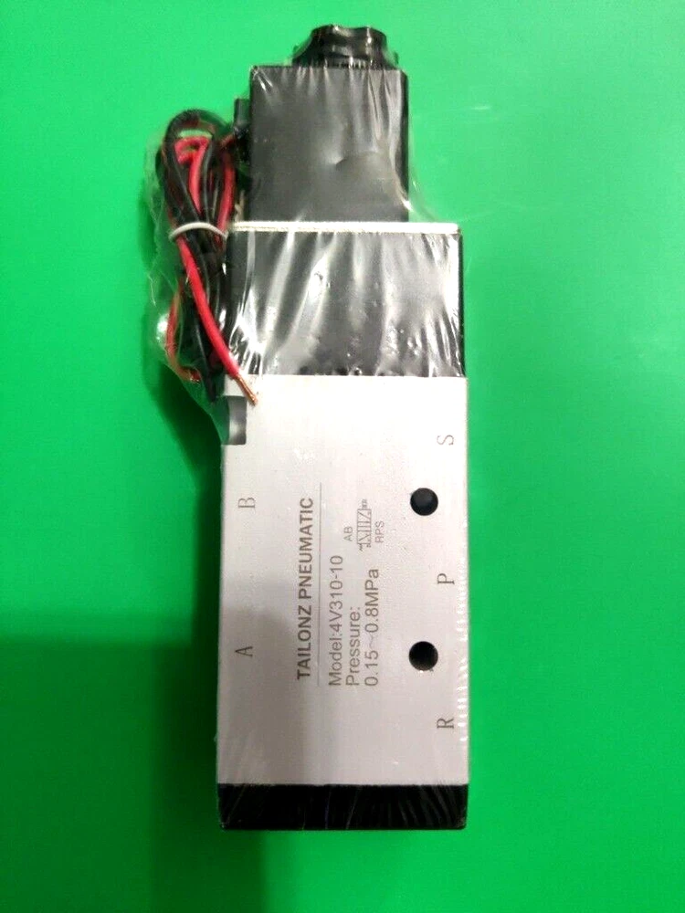 The TAILONZ PNEUMATIC Solenoid Valve 4V310-10 is a robust and reliable unit designed for precision control of pneumatic power in various industrial applications. Operating on a 12V DC system, this valve features a single coil configuration, ensuring a consistent and efficient flow regulation. Its compact package dimensions, measuring 4"x1.5"1", make it an ideal choice for space-conscious setups. Sporting a sleek silver and black color scheme, the valve's durable construction is complemented by its ease of operation, courtesy of the solenoid valve operation mechanism. The valve is sold as a single unit, allowing for flexible integration into existing systems or as a standalone solution, without any attachments. Please note that the listing does not include attachments.