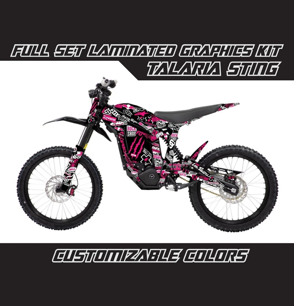 Suitable For: Talaria sting Color: pink black white Universal Fitment: Yes Vintage Part: No Brand: Unbranded Theme: Sticker Bomb Personalize: Yes Placement on Vehicle: Front, Fuel Tank, Headlight, Left, Lower, Rear, Right, Side, Tail Light, Upper, Windshield Material: Vinyl Type: Decal/Sticker Features: Custom Image, Custom Text Manufacturer Warranty: 1 Month Machine Type: talaria sting mx Attachment Type: Adhesive, Self-Adhesive Finish: Glossy, Matte