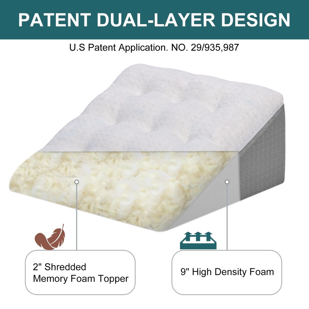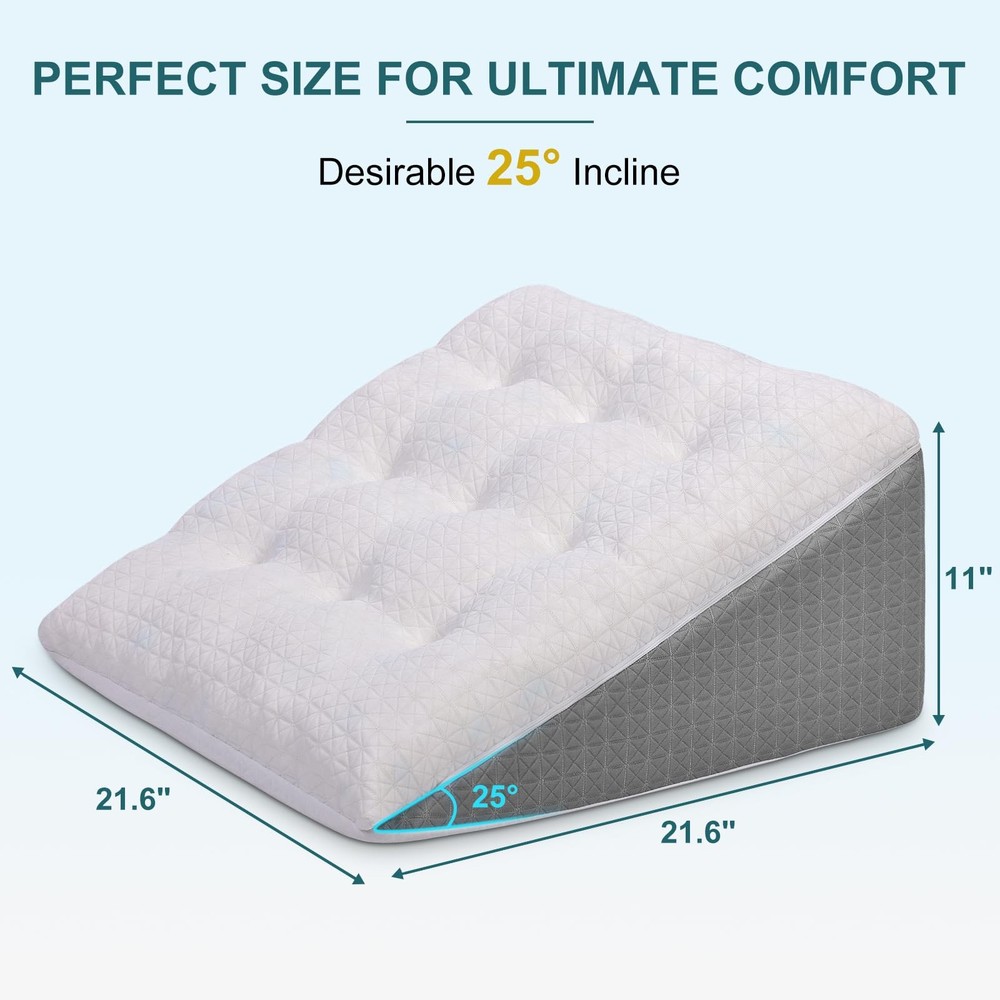 Introducing the Tanyoo wedge pillow for sleep apnea designed to provide the perfect balance of comfort and support. With its patent dual-layer construction, this pillow offers unparalleled relaxation for all your sleep needs. The top layer consists of soft shredded memory foam, providing a plush and luxurious feel. Meanwhile, the bottom layer is made of high-density premium foam for the perfect amount of firmness and support. This makes the pillow ideal for post-surgery recovery, as well as a comfortable night’s sleep. Whether you are looking for a comfortable sleep solution or support during recovery, the Tanyoo Bed Wedge Pillow is the ultimate choice. Order yours today and discover the perfect combination of comfort and support. Patent Dual Layer Design: Tanyoo wedge pillow for sleep apnea features a patent dual layer design for the ultimate comfort and support. The top layer is made of soft shredded memory foam, while the bottom layer is composed of high-density premium foam. Combining comfort and firmness, this pillow is perfect for post-surgery recovery and peaceful sleep. Breathable and Washable Cover: Tanyoo bed wedge pillow for acid reflux relief comes with an air layer outer cover that keeps the foam core protected while breathable and cool. The detachable cover is machine washable, making it convenient to keep it clean and fresh. Relieve Pain & Discomfort: Tanyoo elevated pillows for sleeping is a trusted pain-relief solution. It effectively alleviates acid reflux, neck, back and shoulder pain. Also helpful for breathing and digestive issues, as well as circulation problems. Ideal for post-surgery recovery and daily use. Ideal Dimensions: Measuring at 21" x 21" x 10", our wedge pillow allows for optimal comfort whether you're lying down or relaxing in a seated position. The stable incline provides the perfect angle for reading, relaxing, or watching TV in bed or on the couch. Packing: Our foam bed wedge pillow is compressed in vacuum bags for packaging. The upper cover and foam padding are packed separately in the same package. Once unpacked, the foam padding may appear very flat. Please use a low heat steamer or hair dryer to expedite the fluffing process. Allow 24-48 hours for the pillow to fully fluff up. Insert the foam into the cover and you will have a cozy bed wedge pillow.