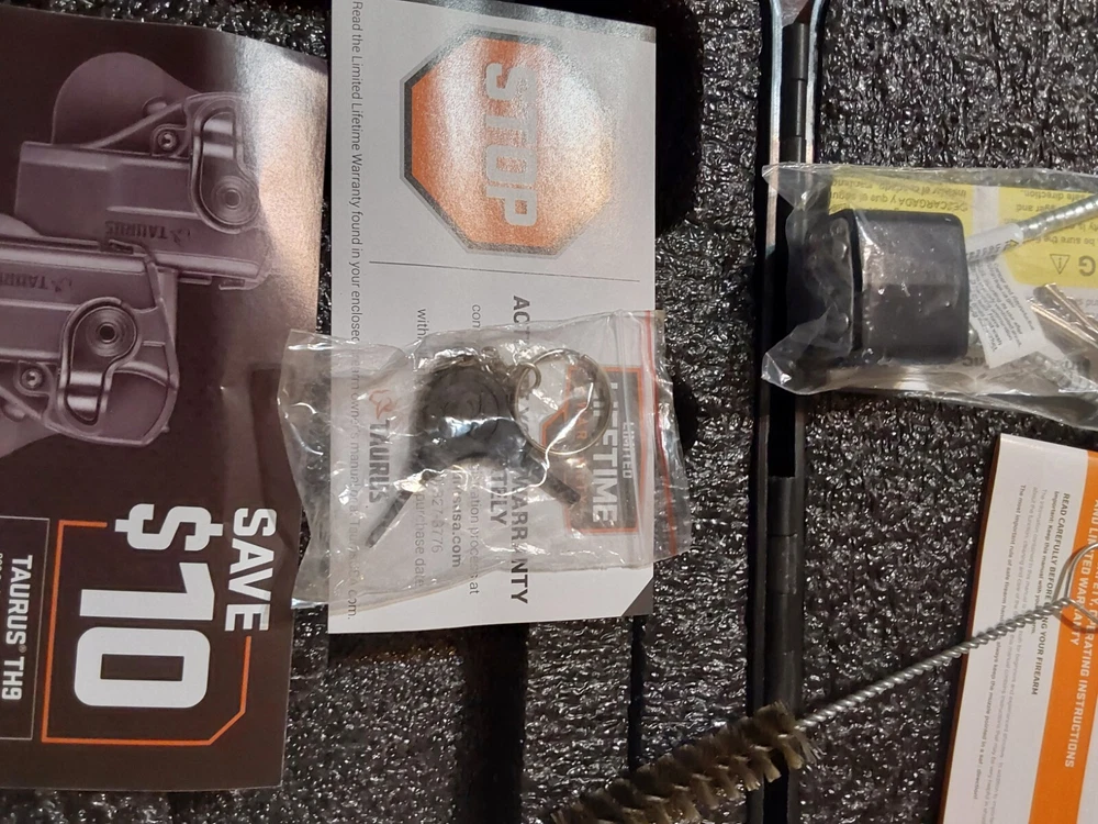 TAURUS TH 40 S/W COMPACT 3.54" BARREL GUN BOX WITH ALL PAPERWORK AS PICTURED. INCLUDED ARE SAFETY AND INSTRUCTION MANUAL, WARRANTY CARD, TAURUS HOLSTER GUIDE, KEY, LOCK & CLEANING BRUSH AS PICTURED. SHIPPED USPS GROUND ADVANTAGE PLEASE CHECK OUT ALL MY OTHER BOXES LISTED