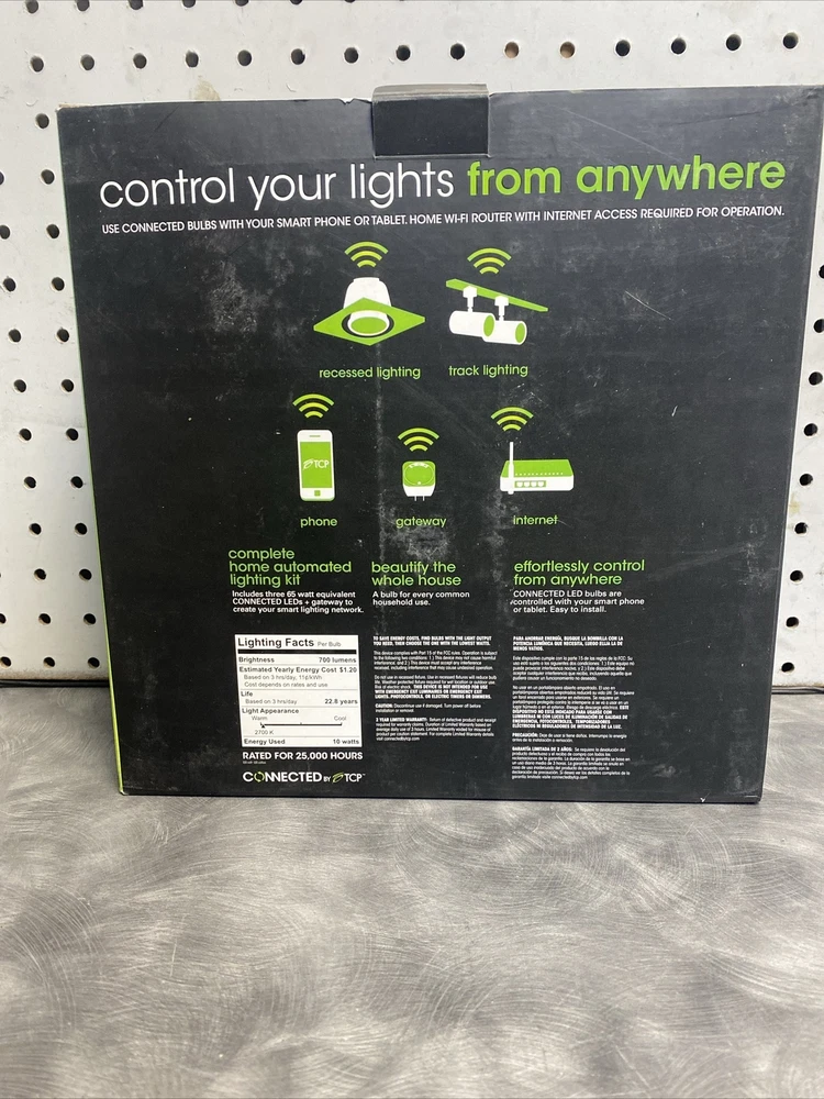 Upgrade your home lighting system with this TCP Connected Automated Home Lighting System. This smart light bulb is perfect for those who want to control their lights with ease. With TCP Connected Automated Home Lighting System, you can set schedules and timers to turn on and off your lights, creating a personalized home lighting experience. Designed by the renowned brand TCP, this smart light bulb is of high quality and will ensure you have a great lighting experience. Easy to install, you will also be able to control this bulb with your phone or voice assistant. Get your hands on this BRAND NEW TCP Connected Automated Home Lighting System today! US Shipping only Any questions feel free to message!