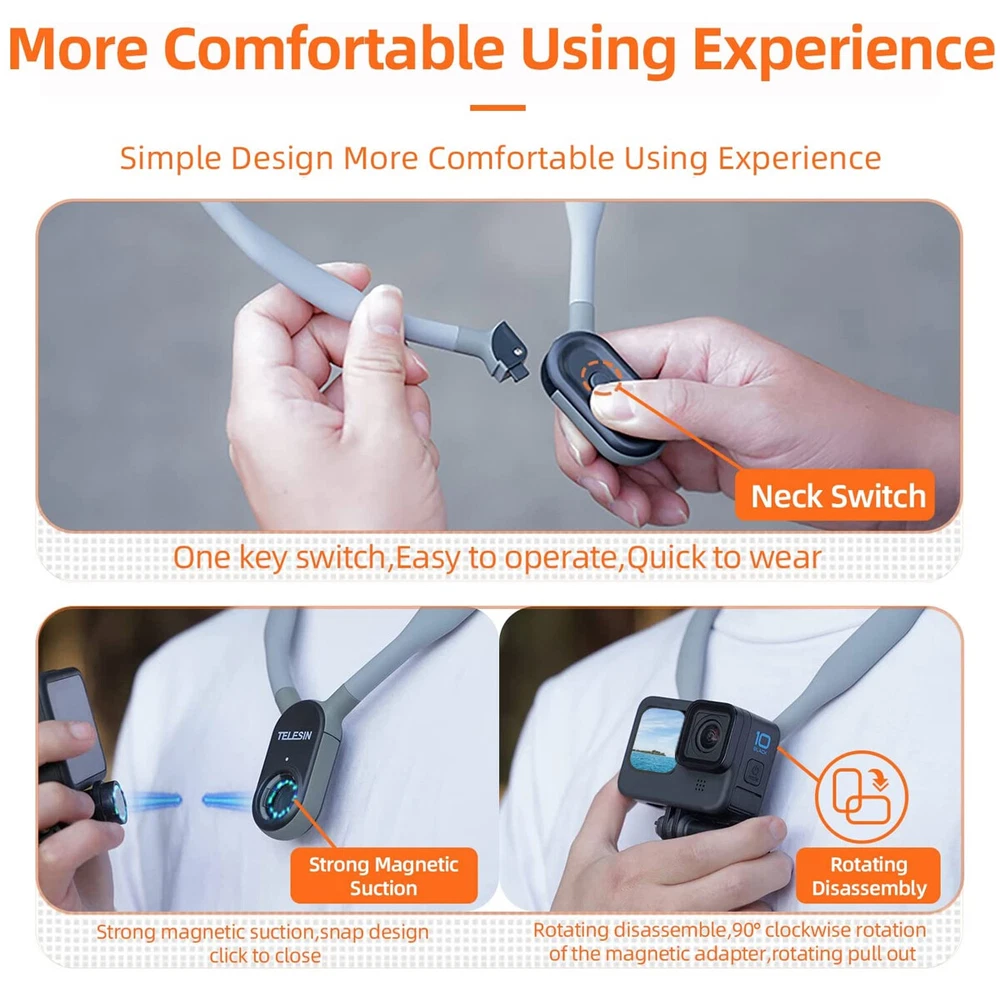 This neck holder is a game-changer for hands-free filming! Perfect for vlogging, sports, or travel, it securely holds action cams and phones (with a clip). The flexible yet sturdy design bends to any angle, and the silicone padding keeps it comfy. Love the horizontal and vertical shooting options—so versatile for capturing every moment!