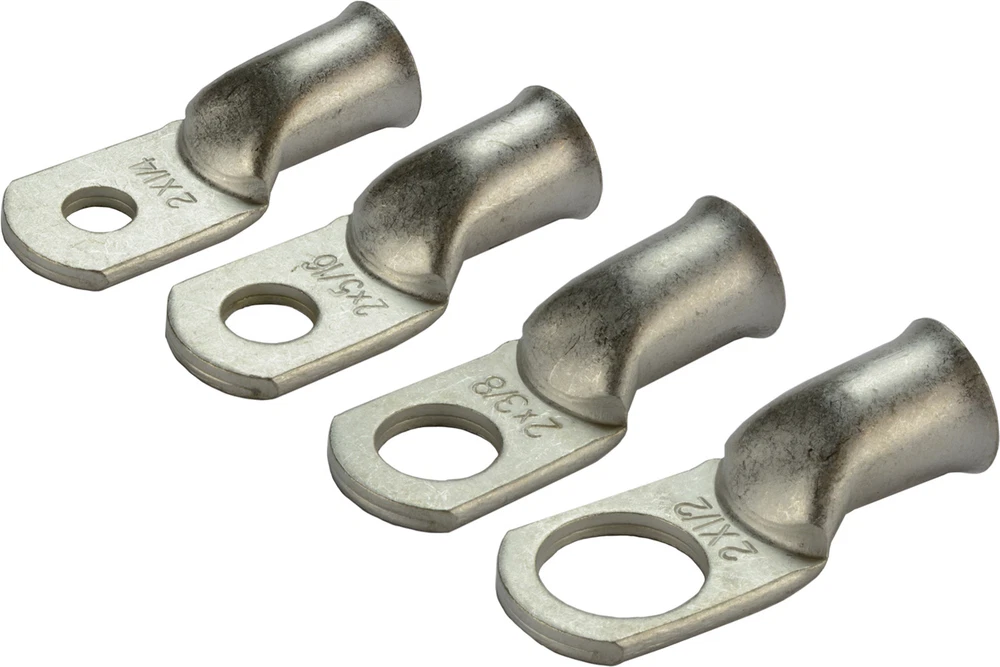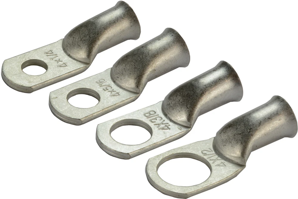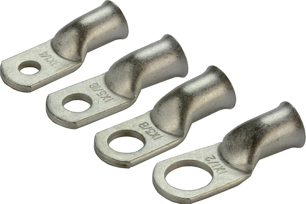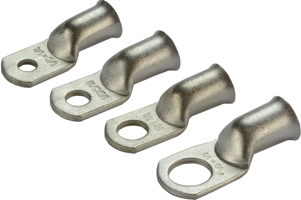 Visit Our Store Specifications Quantity: 1 Piece, 5 Pack, 10 Pack, 25 Pack, 50 Pack, or 100 Pack Material: Tinned Copper ( We also have bare copper! ) Wire Gauge: 6 AWG, 4 AWG, 2 AWG, 1 AWG, 1/0, 2/0, 3/0, or 4/0 Hole Size: 1/4", 5/16", 3/8", or 1/2" Warranty: Lifetime Warranty Data Sheet Download the full specs. LIFETIME WARRANTY View our lifetime warranty. Dimensions Gauge ØE (Hole Sizes) ØE ØD Ød W B L 6 AWG 1/4", 5/16", 3/8" 0.27 0.32 0.23 0.54 0.59 1.47 1/2" 0.52 0.67 0.55 4 AWG 1/4", 5/16" 0.27 0.37 0.29 0.54 0.61 1.53 3/8" 0.41 0.57 1/2" 0.52 0.67 0.59 2 AWG 1/4", 5/16", 3/8" 0.27 0.44 0.33 0.65 0.63 1.62 1/2" 0.52 0.67 0.6 1 AWG 1/4", 5/16" 0.27 0.46 0.36 0.65 0.63 1.72 3/8" 0.41 0.67 1/2" 0.52 0.75 1/0 1/4", 5/16", 3/8" 0.27 0.51 0.41 0.72 0.75 1.84 1/2" 0.52 0.83 2/0 1/4", 5/16", 3/8" 0.27 0.56 0.46 0.83 0.87 2.06 1/2" 0.52 0.83 3/0 5/16", 3/8", 1/2" 0.33 0.62 0.51 0.91 0.89 2.2 4/0 5/16", 3/8", 1/2" 0.68 0.56 1.02 0.94 2.38 Looking for bare copper lugs? Bare Copper Lugs 11 Months From Now... If it doesn't fit. If it looks funny. Or you just changed your mind. Even if it's opened, used or broken, we will still accept your return and pay shipping both ways. No restocking fee. Up to 1 year. Free Shipping To Lower 48 States Features Precision Fit. High-tolerance dies are used in the molding process. Flared Opening for easy wire insertion. Ships from Stock. Most orders arrive in 2 to 5 business days. Lifetime Warranty. Don't choose a product that will degrade or fail prematurely. HIGH Temp Resistance. Won't degrade in high temperature conditions. High Electrolytic Grade Copper Terminals outlast and outperform brass and aluminum models. Closed End Construction. When used with adhesive-lined shrink sleeve, conductor corrosion is prevented by sealing out moisture. As an OEM, we use many of the products we sell. As a result, only high quality materials are offered to you. RELATED ITEMS HEAT Shrink Tubing From $4.25 Diameters: 1/8, 3/16, 1/4, 5/16, 3/8, 1/2, 9/16, 3/4, 1, 1.18, 1.5, or 2 in RING TERMINALS From $3.85 Bare & Tinned Copper 6 AWG - 4/0 1/4". 3/8", 5/16", 1/2" HAMMER CRIMPER $17.50 8 to 0000 (4/0) AWG (CU) Universal Indent Die 5 Year Warranty WELDING CABLE from $9.50 6 to 0000 (4/0) AWG 5 ft to 1000 ft Red and Black Electrician's Tools TH0001 HD Cable Cutter $31.49 Cuts up to 4/0 Forged blades 12" Handles TH0002 HD Cable Cutter $36 Cuts up to 500 MCM Forged blades 18" Handles TH0003 HD Cable Cutter $45 Cuts up to 750 MCM Forged blades 24" Handles TH0004 Hydraulic Knockout Punch $99 1/2" to 2 " Punch Set 9 US Tons 5 Year Warranty TH0005 Hydraulic Cable Crimper $99 6 AWG to 600 MCM (CU) 11 Ton Crimping Force 12 Die Sets TH0006 Hydraulic Cable Crimper $79 12 to 00 (2/0) AWG (CU) 5 Ton Crimping Force 12 Die Sets TH0007 Hammer Indent Crimper $17.50 8 to 0000 (4/0) AWG (CU) Universal Indent Die 5 Year Warranty TH0012 Dieless Indent Crimper $55 8 to 0000 (4/0) AWG (CU) Universal Indent Die 5 Year Warranty TH0020 Dieless Indent Crimper $89 10 AWG - 400 MCM Universal Indent Die 5 Year Warranty TH0021 Sheet Metal Stud Punch $145 3 Die Sets 20 GA, 0.393" (1mm) Mild Steel TH0034 2 Speed Hydraulic Crimper $399 6 AWG to 750 MCM 12 Ton Crimping Force 12 Die Sets TH0037 Hydraulic Knockout Punch $275 1/2" to 4" Punch Set 13 US Tons 5 Year Warranty TH0247 HD Cable Cutter $39 Cuts up to 3/0 12" Handle TH0248 HD Cable Cutter $55 Cuts up to 50 MCM 18" Handle TH0249 HD Cable Cutter $69 Cuts up to 750 MCM 24" Handle Shipping Domestic Lower 48 States: FREE! Local Pickup Available: FREE!* International Calculated by location. Orders are usually processed and shipped within 24 to 48 hours of receipt of your payment. Please provide us with a physical shipping address (failing to do so may delay your order). We may ship an order by a different courier at our discretion. If you need to receive an order within a guaranteed time frame, please contact us for rush options and expedited shipping. Import duties, taxes, and charges are not included in the item price or shipping charges. These charges are the buyer's responsibility. Please check with your country's customs office to determine what these additional costs will be prior to bidding/buying. Furthermore, we will not mark merchandise values below value or mark items as "Gifts". *Local Pick Up is available at our Fremont CA location, Monday through Friday 9:00 a.m. to 5:00 p.m. Please contact us ahead to ensure that your item is in stock at our location before pick-up. Payment & Returns Payment TEMCo accepts the following payment methods: PayPal, Visa, MasterCard, AMEX, Discover. We charge 9.75% sales tax for all orders shipping within California. Tax exemption is available if we are provided with a valid California resale certificate. Returns TEMCo allows for the return of products for 1 year from the date of purchase. Even if it's opened, broken, or used, we will still accept your return and pay shipping both ways. We will replace the item with an identical item or issue a refund for the value of the item. Customer feedback We strive to provide 5-star service. Shop with confidence! 100% Positive reviews We want nothing more for our buyers than to be 100% happy with their purchase. We strive to earn a 5-star rating from every purchase. When you receive your purchase, please take a moment to leave us a positive feedback. If there was something unsatisfactory about your purchase, please contact us before leaving feedback and we'll do what's necessary to remedy the problem and ensure your satisfaction! When your order ships from our warehouse, we will automatically leave you positive feedback. "I have always been delighted with the service from TEMCo." Your customer service, which is seldom needed, is wonderful, the staff knowledgeable and courteous. The shipping has been quite fast, which make my life easier... So, thank you, for the good experiences with the company! Rick C "I have ordered from TEMCo several times over the last 2 years and have alw