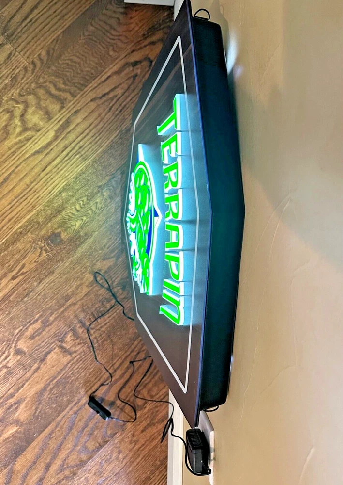 TERRAPIN BEER Co Logo LED Beer Sign ~ Craft Beer Lighted Sign 22.5" x 20" x 3" ~ Bar Mancave Beer Sign ~ Has Chain for hanging, or can hang from wall screws on back. Condition: New - please see all photos Shipping: USPS Ground Advantage with insurance and tracking