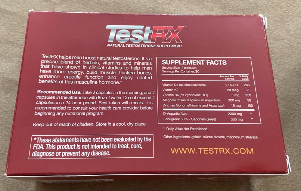 TESTRX Natural Test Booster Supplement - 120 Capsules…Buy Now. Dietary supplement with vitamin B6 and vitamin D… Any questions or concerns before purchasing please let me know… Thank you