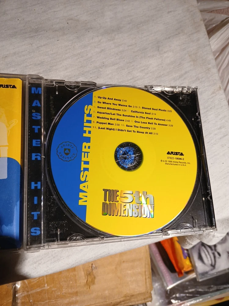 This CD album is a must-have for fans of The 5th Dimension and lovers of Afrobeat, Motown, and Pop R&B music. The album features a collection of their greatest hits and is still sealed in its original packaging. The CD grading is Very Good (VG) and the case type is a Standard Jewel Case. The inlay condition is Very Good (VG) as well. The record label is Arista and the release title is THE 5TH DIMENSION MASTER HITS. The CD format is a First Edition and the case color is Multicolor. The album is perfect for anyone who enjoys alternative, soul, and R&B & Soul music. This product is categorized under Music and CDs.