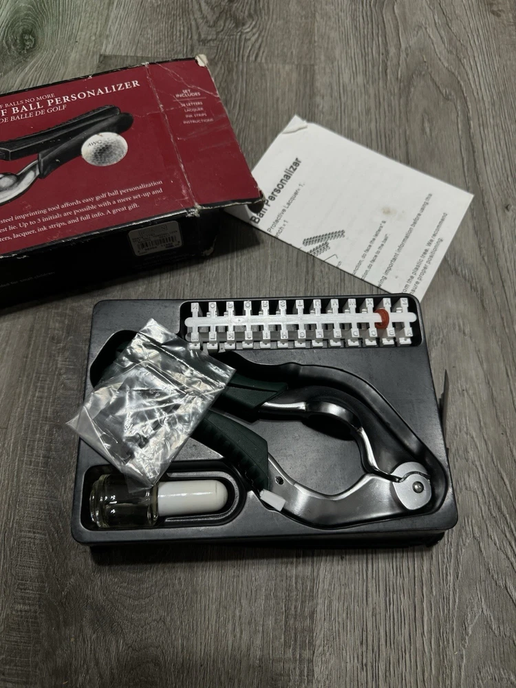 THE Amazing Golf Ball PERSONALIZER KIT, Restoration Hardware Never Used New damaged box but item is NEW!