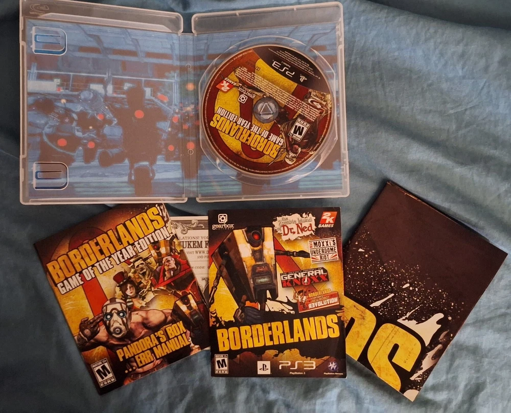 Before there was all this rocketing around in space there was... PANDORA! Immerse yourself in all the madcap looter-shooter action you can handle with the PS3 versions of Borderlands 1 and 2, and the DLC add on content. All confirmed working, all codes present, and a poster/map of pandora to boot. Three discs included, in cases, with manuals, collector's items, DLC code.