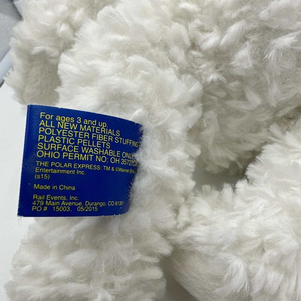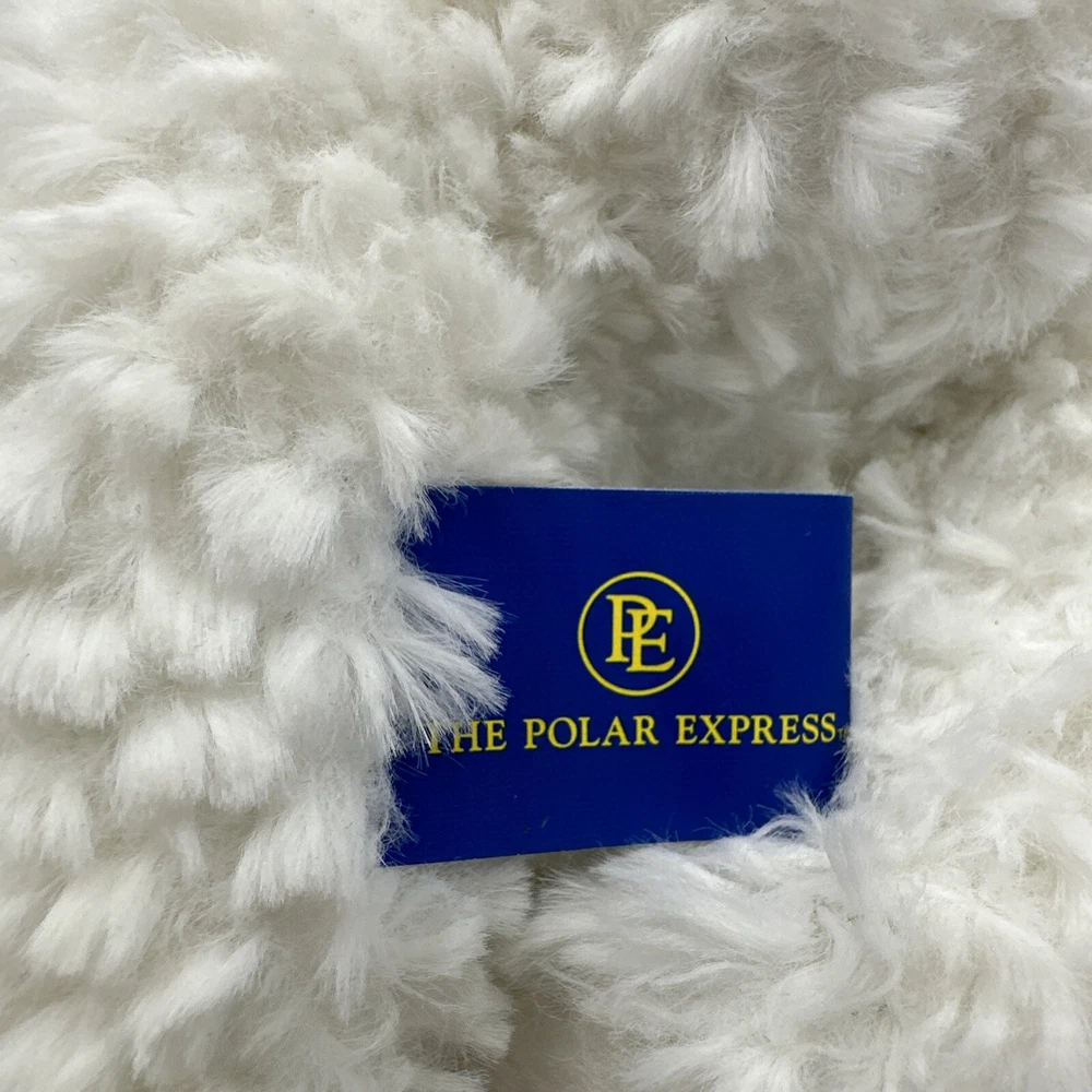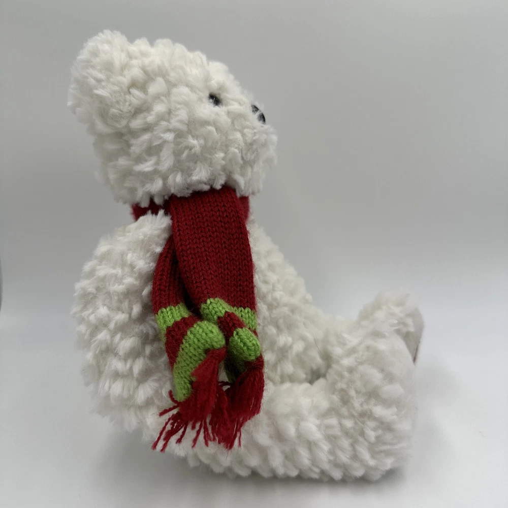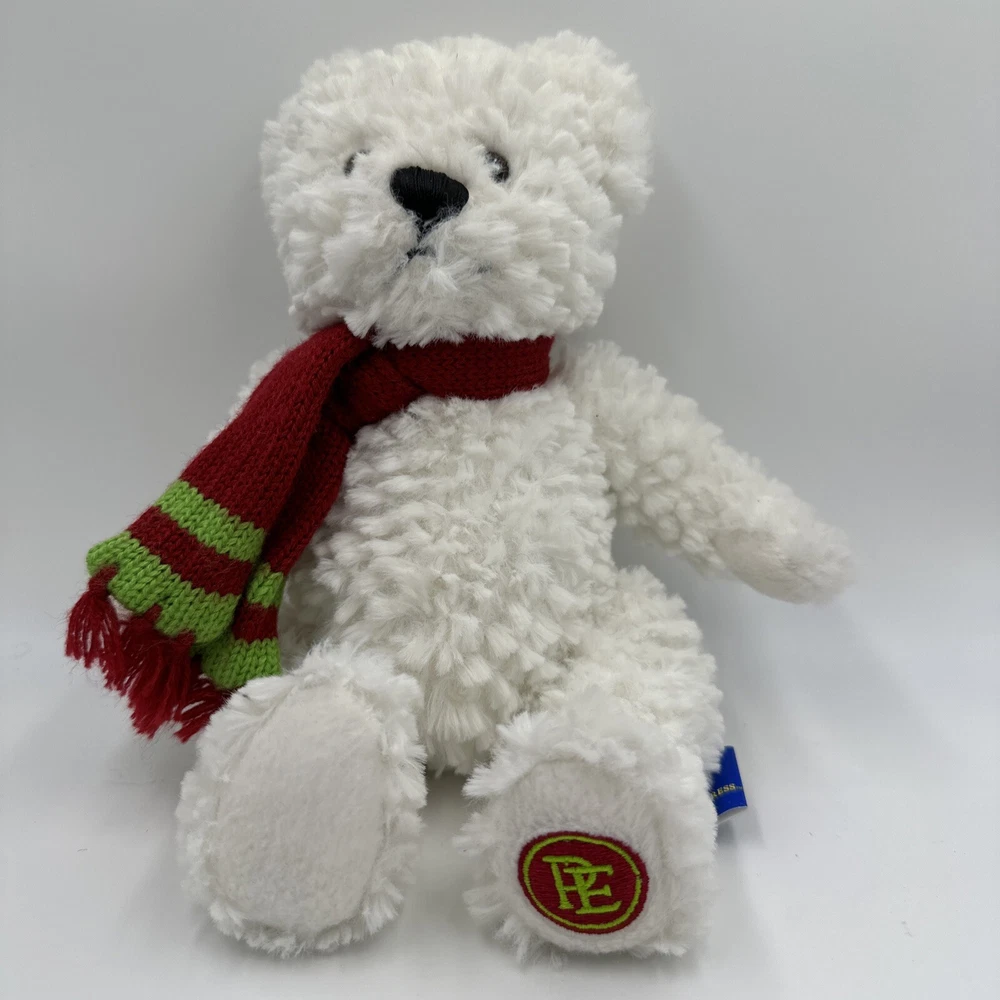 THE POLAR EXPRESS White Plush Stuffed BEAR Green Red Scarf. 11”