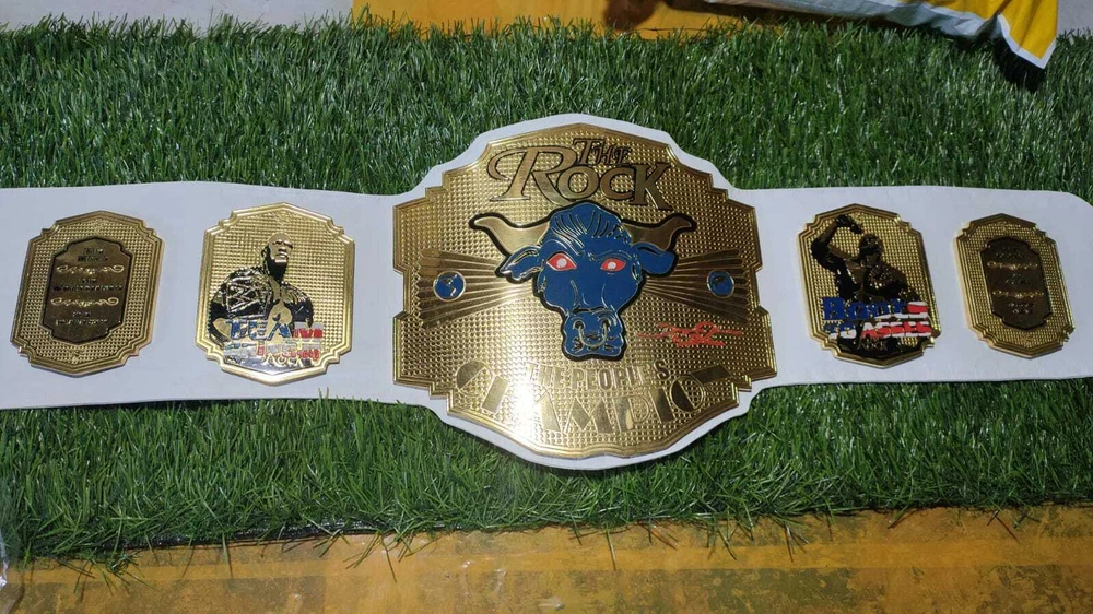 Welcome to our shop ------------------------------------------- We are specialist in manufacturing handmade products:: Our wide range of products include: >>>>Championship Belts WWE | WWF | AEW | UFC | WBC | WCW Product Description PICTURES ARE OF 4MM ZINC *** THE ROCK BRAHMA BULL WRESTLING CHAMPIONSHIP BELT *** Plate Metal: Brass (Zinc available on request with additional cost) Strap: 100% Leather Largest Waist Size: Fits upto 46'' Belt Length: ~50" Weight: 6.17 lbs | 2.81 Kg Plate Thickness: 2mm (4mm Version available on demand with additional cost) ::The belt is well crafted and manufactured to meet the quality demands of fans:: Get your hands on this marvelous piece now! Note: If you need further details kindly inbox us, we will try to be as responsive as possible. ------------------------------------------- Return Policy: Generally we don't have much complains on our products and we make sure to 100% satisfy our clients. We send the product in well Bubble Wrapped packaging so there is highly unlike chance of getting damaged item. In case there is a damage, we will try to give partial refund or you can ask for full refund within 30 days after returning the belt to origin. NOTE: 1. If you have placed the order by mistake or you have purchased a wrong item then we are not going to refund that. 2. Buyer will pay the shipping fee of returning the belt. ------------------------------------------- Happy Shopping! :)