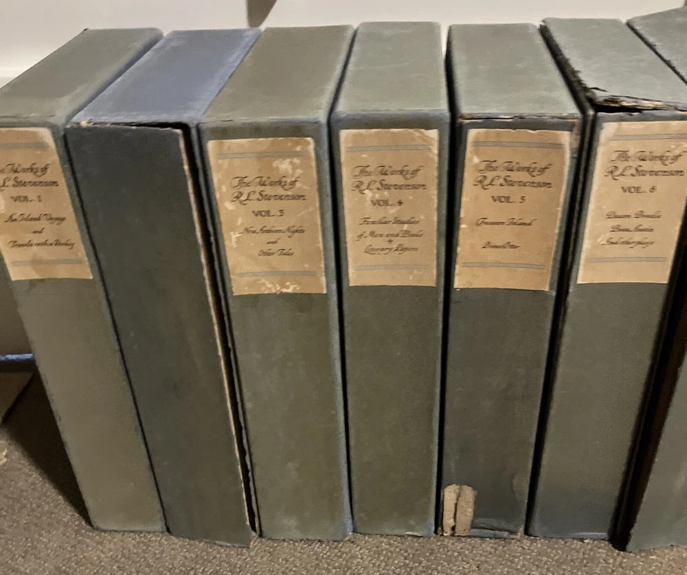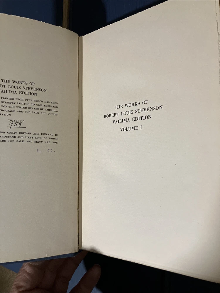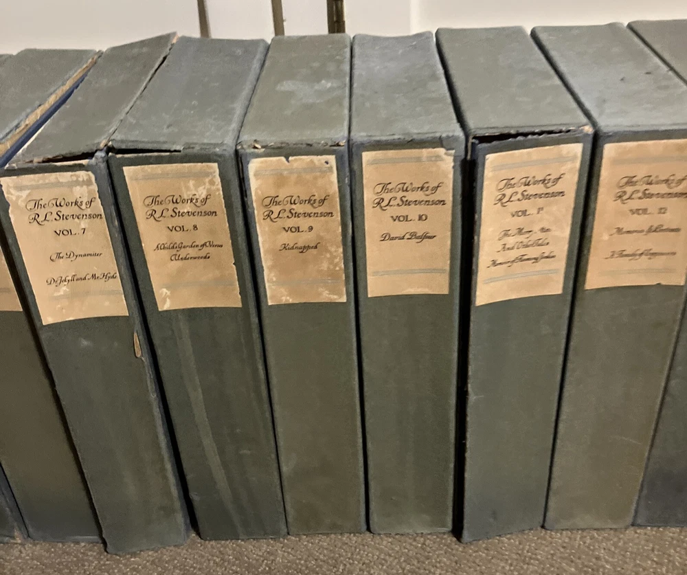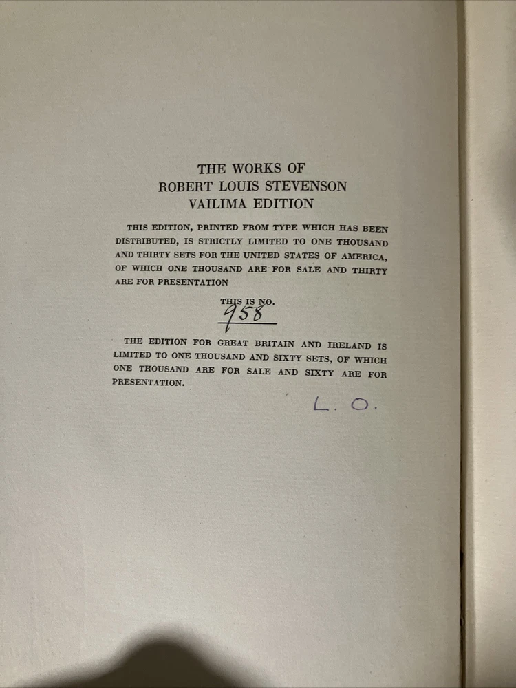 Includes Original Cardboard Sleeves——Some Are Torn With Age———-Spines Are Faded-Books Are Solid————-One Loose Tissue—————Some of The Cardboard Sleeves Were Exposed To Moisture Along The Bottom————Limited Transfer to Books————The product is a limited edition set of 26 volumes of "The Works of Robert Louis Stevenson" in the Vailima Edition. The set is numbered 958 out of 1060 and includes sleeves for protection. Authored by R. L. Stevenson, this collection falls under the category of literature and fiction, making it a valuable and collectible item for book enthusiasts. The set offers a comprehensive compilation of Stevenson's works, providing readers with a rich literary experience in a special edition format. Please see all photos.I Only Ship Overseas Through Ebay Global Shipping, If you are unhappy with item,please contact me to resolve the problem before opening a case,I value your business and work hard to keep a top seller rating, Thank You!