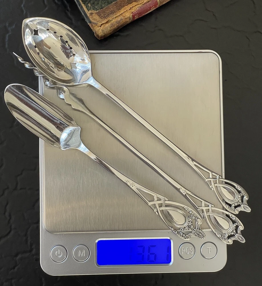Stunning Set of THREE Rare Original Antique Lunt Monticello Sterling Silver Dining Serving Pieces β’ Olive Butter Cheese Set β’ Superb Stylish Examples β’ Kindly View Photo Gallery β’ 1.361 ozt Beautiful set of THREE fine extremely rare gleaming Lunt Monticello serving pieces, just perfect for your next celebration, party or holiday gathering. Glorious serving set includes one butter pick 6.5β, one pierced bowl olive spoon 6.4β, and one Stilton cheese scoop 5.5β. A stunning addition to any collection of American silver to be used and enjoyed for generations. Lightly hand polished to reveal luminous silver shine. Superb original examples in signature Monticello pattern by LUNT, c1908. Excellent antique condition with quality feel in hand. Sumptuous design featuring elegant classical cartouche motif. Sterile and ready to use. Happy Bidding!