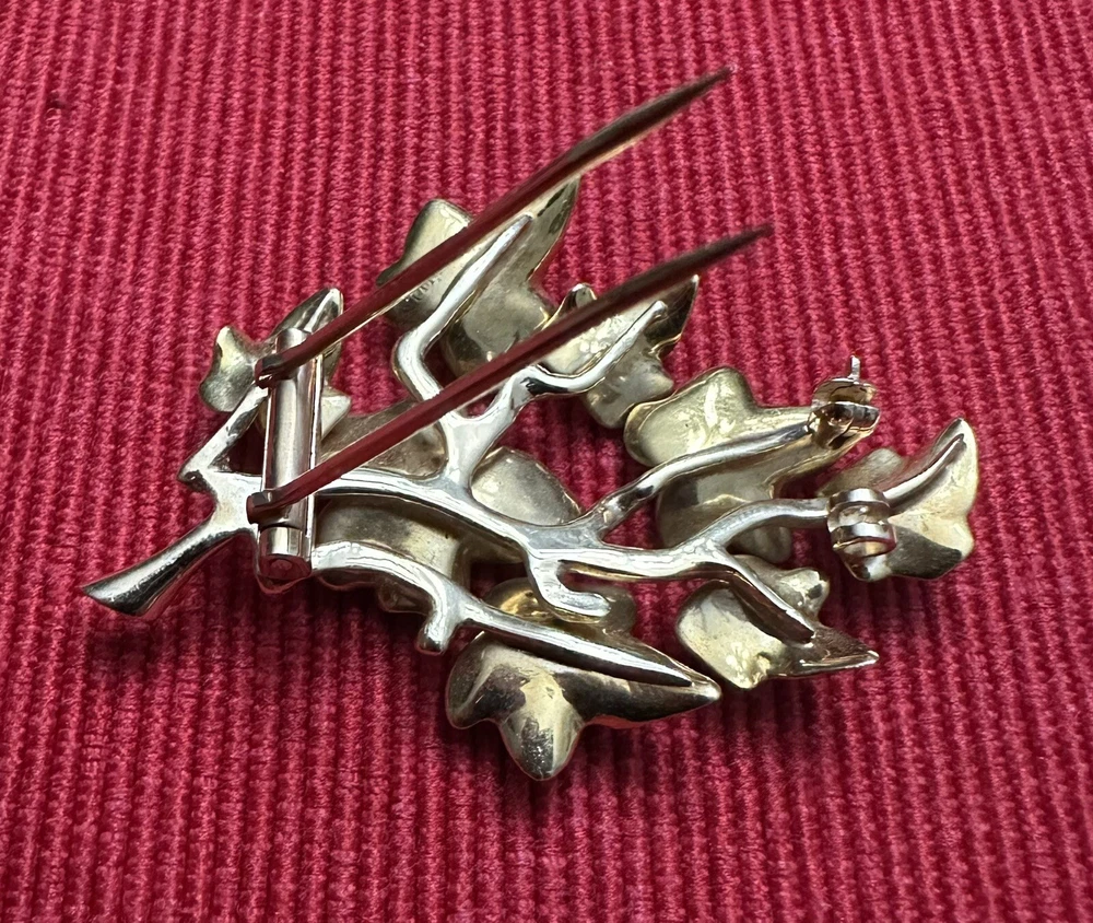 Vintage Hattie Carnegie Brooch Sterling Silver Gold Plated with Genuine Stones