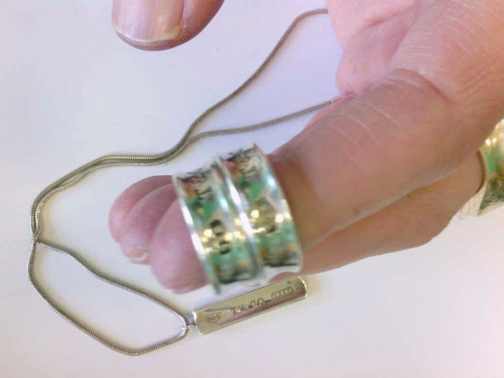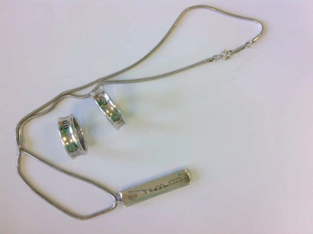 You are viewing a TIFFANY & CO 1837 STERLING 925 Concave Band Rings/Bar Pendant/Necklace. BUY NOW!! Read below for further details... WILL NOT SEPARATE LISTING. SOLD AS A WHOLE SET. WE DO NOT KNOW IF THE BAND RINGS WILL BE ABLE TO BE SIZED WITHOUT RUINING THE DESIGN- CONTACT A PROFESSIONAL JEWELER. THERE IS NOT TIFFANY POUCH OR BOX INCLUDED. THERE ARE 2 RINGS AND A CHAIN/PENDANT ALL INCLUDED- WE HAVE TO REITERATE DUE TO THE FACT THAT SOME DO NOT LOOK AT PICS. 1 RING SIZE- 7.25-7.375 US, 1 RINGS SIZE 6 US, CHAIN LENGTH- 18" RINGS ARE DATED 1997 BAR PENDANT- 2001 PLEASE READ ENTIRE LISTING AND SEE PICS FOR ALL DETAILS AND QUESTIONS YOU MAY HAVE. THERE IS A RULER IN THE PICS FOR MEASUREMENT REFERENCE. WOULD MAKE A NICE GIFT- OUR OPINION. Seller's Notes: I have sold and currently listing some wonderful items to the great people of eBay. This is the exact item you will receive. Overall in very good pre owned shape- dark toning, hairlines light wear. We lightly polished them by hand and came out nice. We believe with a proper polishing it could potentially sparkle. As far as polishing it is my understanding that Tiffany & Co polishes their items for customers for no or little money. Would add nicely to any collection. See high def pics to determine condition ,style, etc. PLEASE CHECK OUT MY OTHER AUCTIONS!! THANK YOU!! Particulars: Weight and Size- 1. Ring- US size 7.25-7.375, Weight- 7.7 grams 2. Ring- US size 6. Weight- 7.4 grams 3. Chain/Pendant- 12.9 grams I DO NOT KNOW IF YOU WILL BE ABLE TO SIZE THIS RING OR HOW MUCH IT CAN BE STRETCHED. I DO NOT OFFER THIS SERVICE. PLEASE CONSULT A PROFESSIONAL JEWELER. Other measurements- Please see pics. Hallmarks- Tiffany & Co, T & Co, 1837, 925, 1997. TIFFANY & CO POUCH NOT INCLUDED. Item will be as pictured. There's pre owned wear but with a professional cleaning this ring could sparkle. Foreign bidders- total shipping weight will be 6 ounces. Bidding and Shipping: I will ship to 48 states. USPS Priority with tracking and insurance and signature. Buyer will pay a flat fee of $6.99. Alaska, and Hawaii will pay a shipping rate based on eBay. Overseas shipping using eBay Global Shipping- YES PLEASE NOTE: I WILL NOT SHIP THIS PERSONALLY- MEANING I WILL USE EBAY GLOBAL SHIP TO SHIP THIS ITEM THEREFORE OVERSEAS BIDDERS YOU WILL HAVE IMPORT CHARGES. I DO NOT KNOW OR AM I RESPONSIBLE FOR THOSE CHARGES. PLEASE CONSIDER THIS BEFORE YOU MAKE YOUR BID. THANK YOU. I WILL ALSO OFFER A 2ND OPTION - FOR THOSE WHO DO NOT WANT GLOBAL SHIP. IT MUST BE A RECOGNIZED COUNTRY THAT WILL ALLOW ME TO SHIP THRU EBAY. I WILL NOT CALL THIS ITEM A GIFT WHEN SHIPPING OVERSEAS. Please pay within 2 days after the auction is complete. I usually ship 1-2 days after receiving clear payment. Sometimes sooner depending on time constraints. Item sold "as is" We have the right to end this auction at anytime. I do not ship on Saturdays Great feedback is always appreciated!!! WE RESERVE THE RIGHT TO SELL TO EBAY MEMBERS WITH 500 FEEDBACK OR LOWER. This is a "BUY NOW" auction. Priced to sell!! Will combine shipping- Just let me know. Thank you!! ____________________________________________________________________________ Tiffany & Co set ready to be added to your collection. If you have any questions please feel free to contact me at anytime. I usually respond within 24 hours sometimes sooner. Thank you and happy bidding!! PLEASE TAKE A MOMENT AND CHECK OUT MY OTHER AUCTIONS!!
