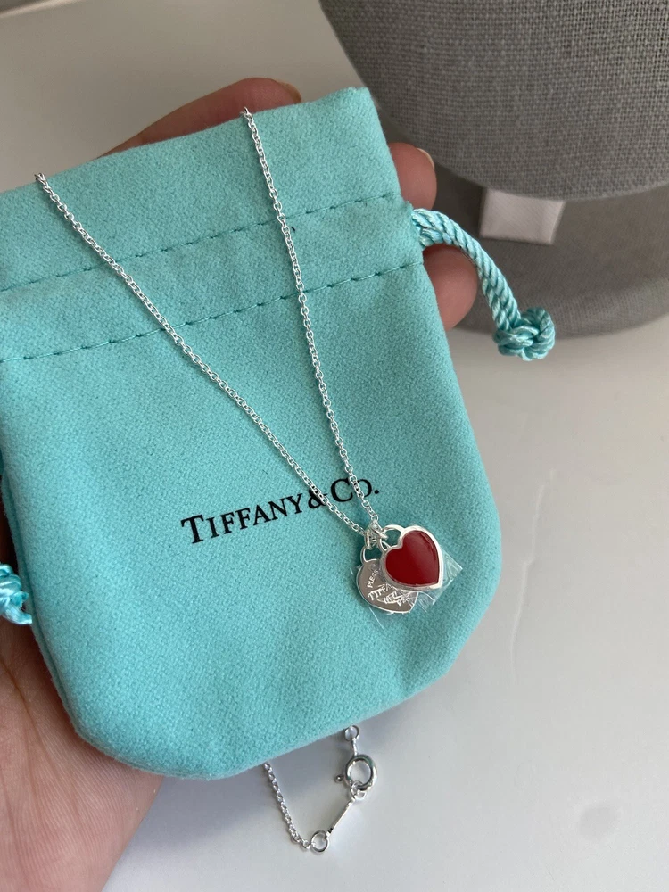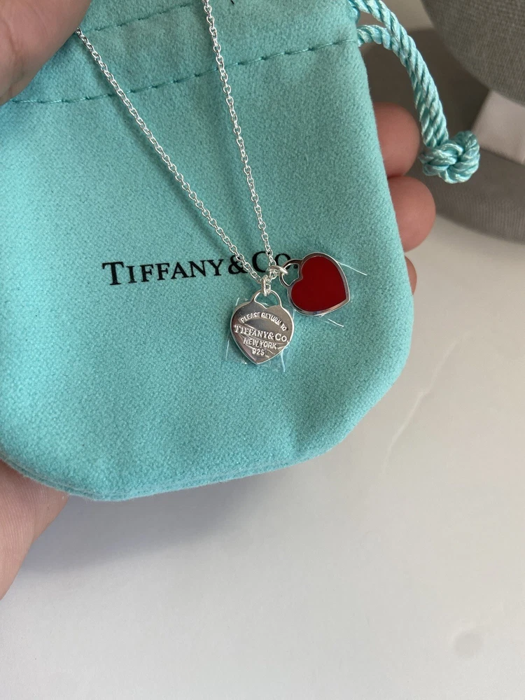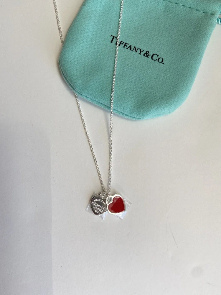 TIFFANY & Co. Return to Mini Double Red Heart Enamel Pendant Necklace SV925