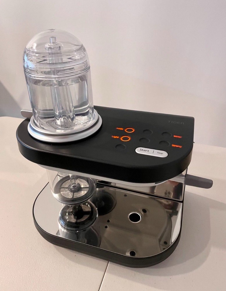 The TIGER SIPHONYSTA Automated Siphon Brewing Coffee Maker is a sleek and modern coffee maker that brews delicious coffee using ground coffee. This model features adjustable amount of coffee, auto shut-off, and a removable drip tray for easy cleaning. Made of stainless steel, it also includes a permanent filter, making it practical and durable for everyday use. The package includes a user manual, measuring scoop, and drip tray, making it a convenient addition to any kitchen.