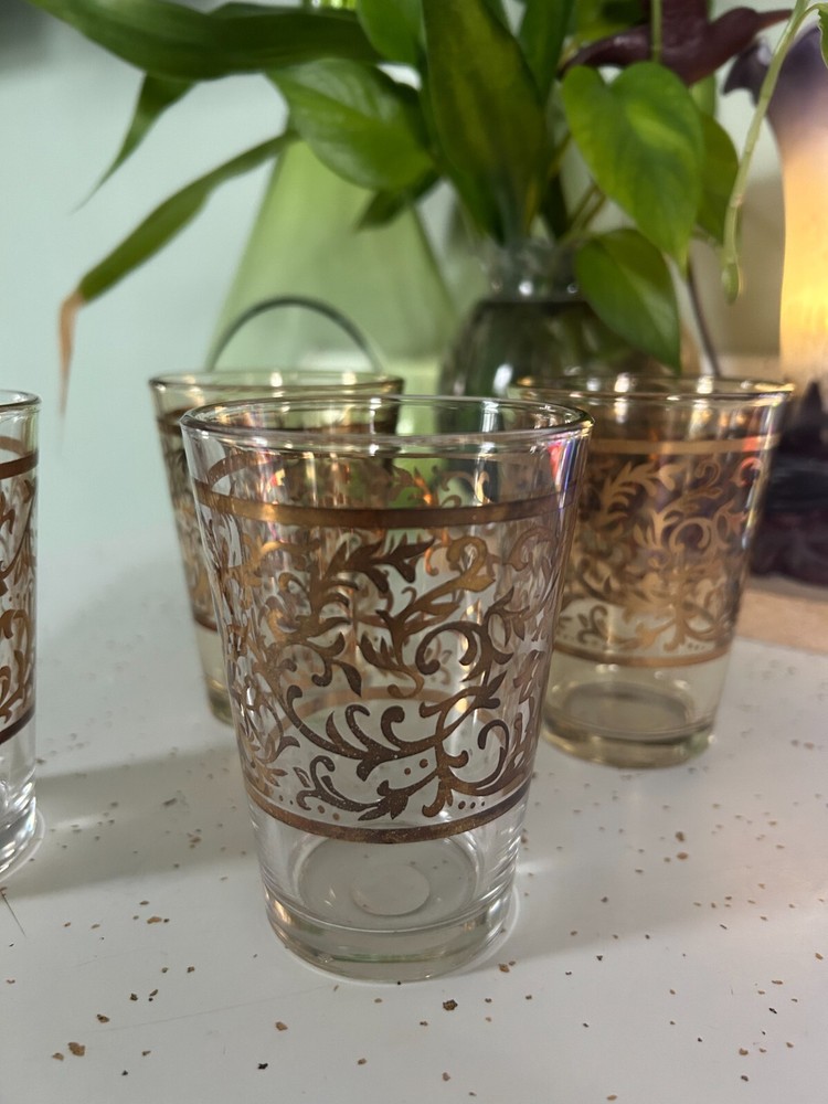 MEXICAN Cocoa/ Vanilla Gold Swirl Wine GOBLET Hand Blown HEAVY Stems