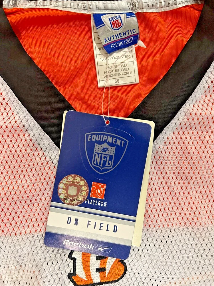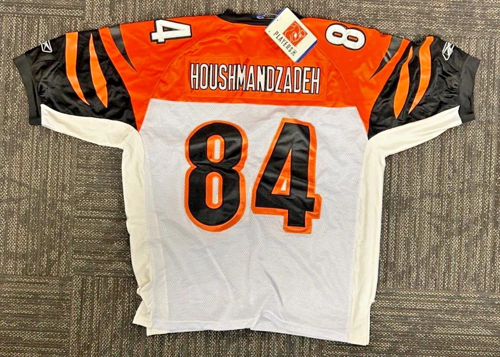 Show off your love for the Cincinnati Bengals with this vintage Reebok jersey featuring T.J. Houshmandzadeh's name and number on the back. Made with high-quality materials, this unisex adult jersey is perfect for any football fan who wants to support their favorite team in style. The white jersey is adorned with the official team logo and is officially licensed by the National Football League (NFL). Whether you're heading to a game or just want to add to your collection of fan apparel and souvenirs, this T.J. Houshmandzadeh jersey is a must-have for any true Bengals fan. Don't miss out on the opportunity to own a piece of football history.