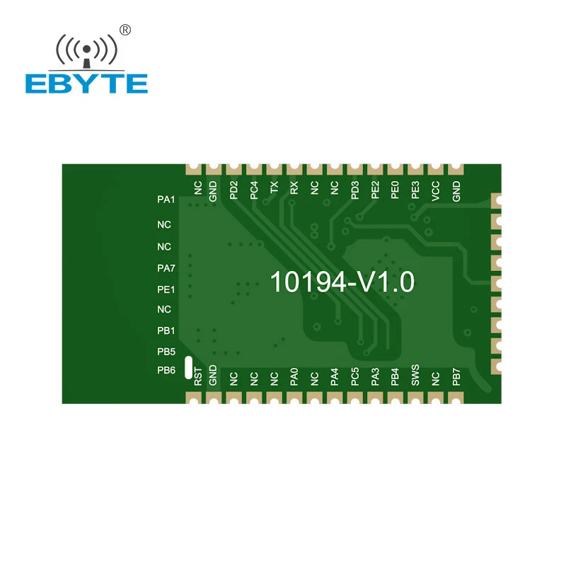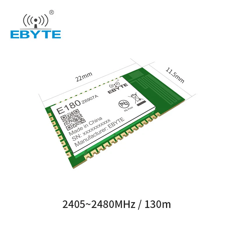 TLSR8269 IoT Wireless Soc Transceiver ZigBee 3.0 2.4GHz 7dBm 130m 32 Bit Module RF Parameter Value Remark Working frequency 2405~2480MHz Support ISM band Max Tx power 7 dBm - Air data rate 250kbps - Distance for reference 130m Between two points (ZigBee network supports routing multi hop function, and the transmission distance can be extended by increasing the router). Hardware Parameter Value Remark Size 11.5*22 mm - Antenna PCB 50 ohm impedance Connector 1.27mm Stamp hole Packing SMD - IC TELINK TLSR8269 - Protocol Zigbee 3.0 - FLASH 512KB - RAM 32KB - Core 32-bit MCU - Electronic parameter Min. Typ. Max. Unit Condition Operating voltage 1.9 3.3 3.6 V ≥3.3 V ensures output power Communication level - 3.3 - V For 5V TTL, it may be at risk of burning down Working temperature -40 - +85 ℃ Industrial design TX current - 40 - mA Instant power consumption RX current - 35 - mA - Sleep current - 16.5 - μA Software shutdown