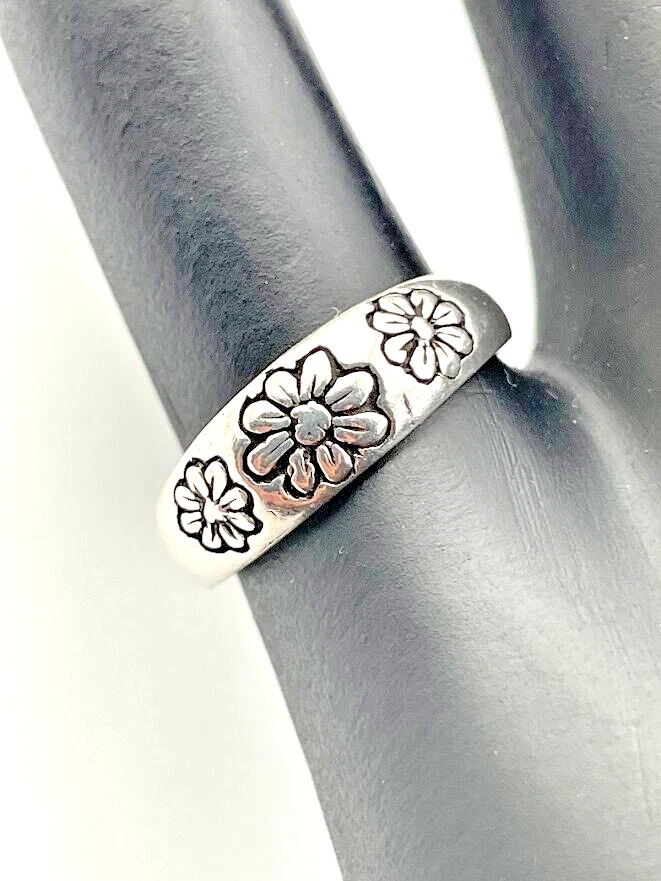 TMA THAILAND 925 STERLING SILVER DAISY FLORAL RING SIZE 4.5 TOE PINKY 2431 FINGERTIP ****************************** Thank you for your interest in our jewelry. We?d like to introduce ourselves. We are just a retired couple who love matching our customers with great jewelry. We?re not professional jewelers. To have the best shopping experience we like to recommend the following: Please measure your hand, wrist, finger or neck to ensure the best fit. We can use your measurements to help with sizing. Please ask all the questions you want. We know some stuff and, if we don?t, we?ll do the research. We like to learn too. More Stuff: If an item is described as ?gold over 925 sterling silver? this means it is gold vermeil. Vermeil is the process by which a layer of gold (usually 14k or 18k) is bonded to sterling silver. We only clean with gentle soap and warm water to avoid damage. The items we sell may be new or pre-owned and may have normal wear, slight damage, and/or tarnish. We make every effort to ensure the items we sell are as described. This includes testing to confirm metal purity if the item isn?t marked, and testing for gemstone identity. We try to put measurements in the jewelry description and include a photo of each piece with a U.S. quarter (25mm).