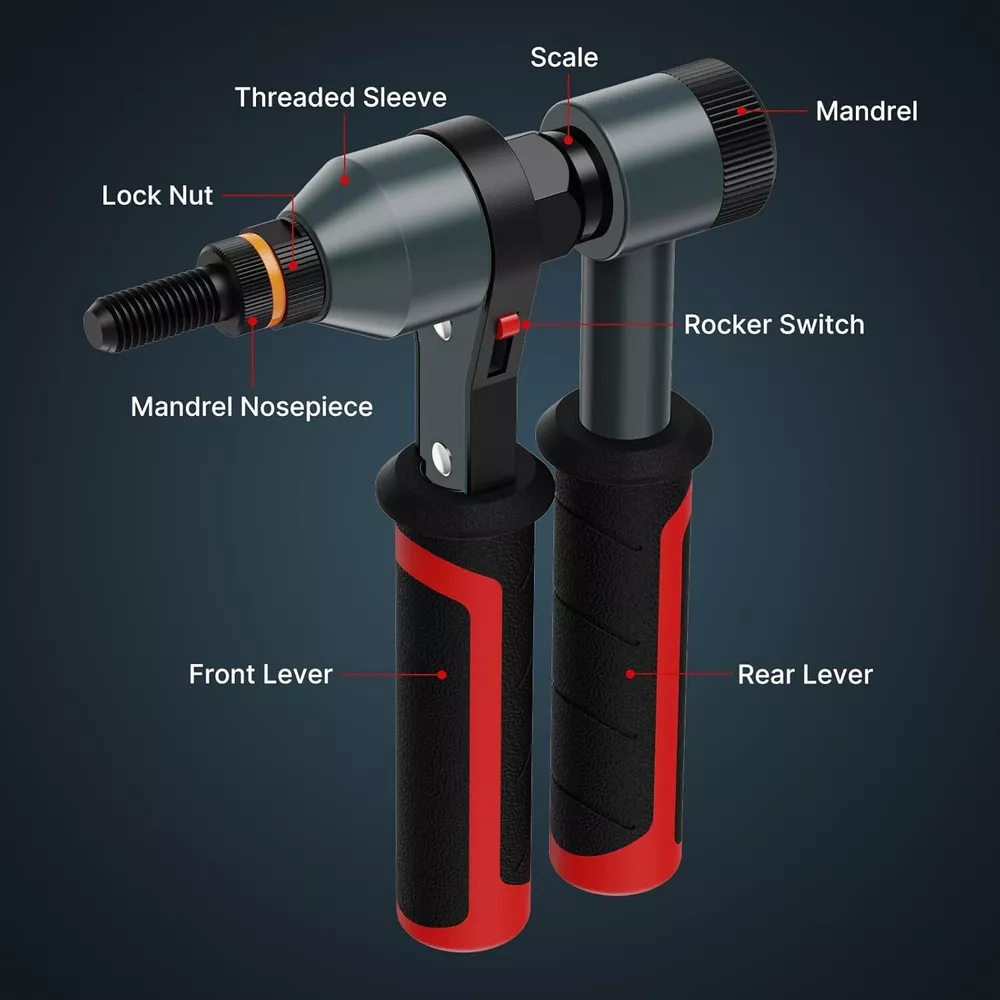 Rivet Nut Tool Rivet Nut Kit, Rivnut Tool Kit with 10 Metric and SAE Mandrels, 100 Pcs Rivet Nuts Assortment Kit, Professional Ratchet Nutsert Tool Kit with Rugged Carrying Case, TR21 Ratcheting Mechanism: The Ratchet Nut Tool features a ratcheting mechanism that allows for easy and efficient installation of rivet nuts. This mechanism ensures that the nut is securely fastened without excessive manual force Quick change mandrels: A convenient feature of the TOLRET Rivet Nut Tool is the quick-change mandrel system. This allows users to easily switch between different mandrel sizes without the need for additional tools, reducing downtime during jobs Ergonomic Design: The ergonomic design of the handle provides a comfortable grip and optimal control during operation. So that users can reduce fatigue and improve work efficiency when using it for long periods of time Durable Construction: Built to withstand the rigors of industrial use, the Ratchet Rivet Nut Gun features a rugged and durable construction. The combination of high quality materials and precision engineering ensures a long service life Consistent results: The ratcheting mechanism ensures that each rivet nut is installed with a consistent level of force, resulting in reliable and consistent results for nut tightness and safety