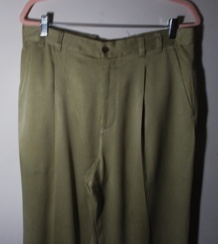 See my EBAY STORE at “SAMTPC53” to view 100’s more of my Men's Pants!!! Combine Shipping: (on multiple items you pay full price on heaviest item first and then HALF PRICE shipping on ALL other items. Men's 100% Silk Pants. Brand: TOMMY BAHAMA. Description: men's 100% Silk TOMMY BAHAMA pants, pleated front and cuffs, zipper, button and zipper on front, belt loops, 2 front pockets and 2 rear pockets, see pics. Color: Tan. Size: 34W, 29L (please see measurements). Measurements: 34" waist, 29" inseam, 13" rise. Material: 100% Silk. Condition: Very Good Condition .