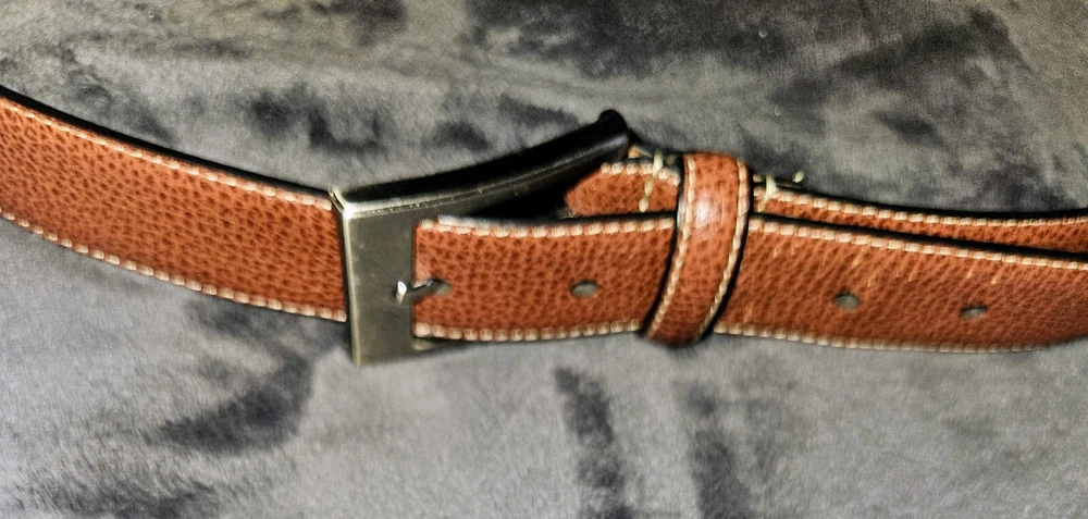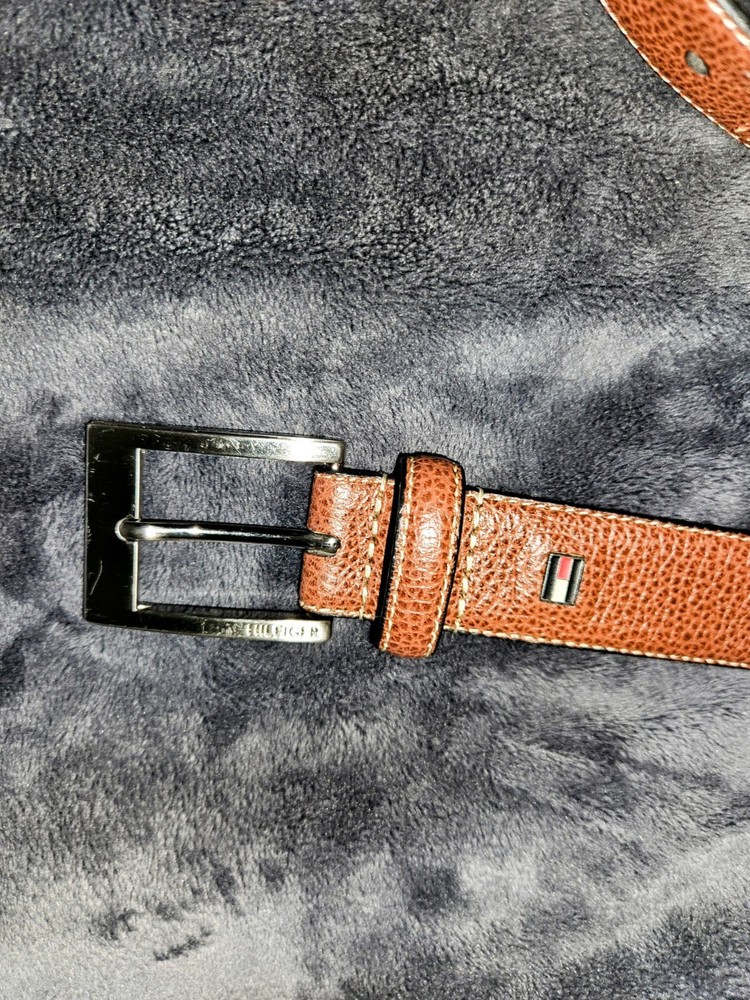 Elevate your wardrobe with this TOMMY HILFIGER double keeper waist belt in a rich brown color. Crafted with genuine leather and featuring a stitch edge design, this belt is perfect for any preppy or dressy occasion. The buckle and logo accents add a touch of sophistication to the overall look. This belt is a size 36 and is designed for men. It is made of high-quality materials and is built to last. Whether you're dressing up or down, this belt is a versatile addition to any outfit.