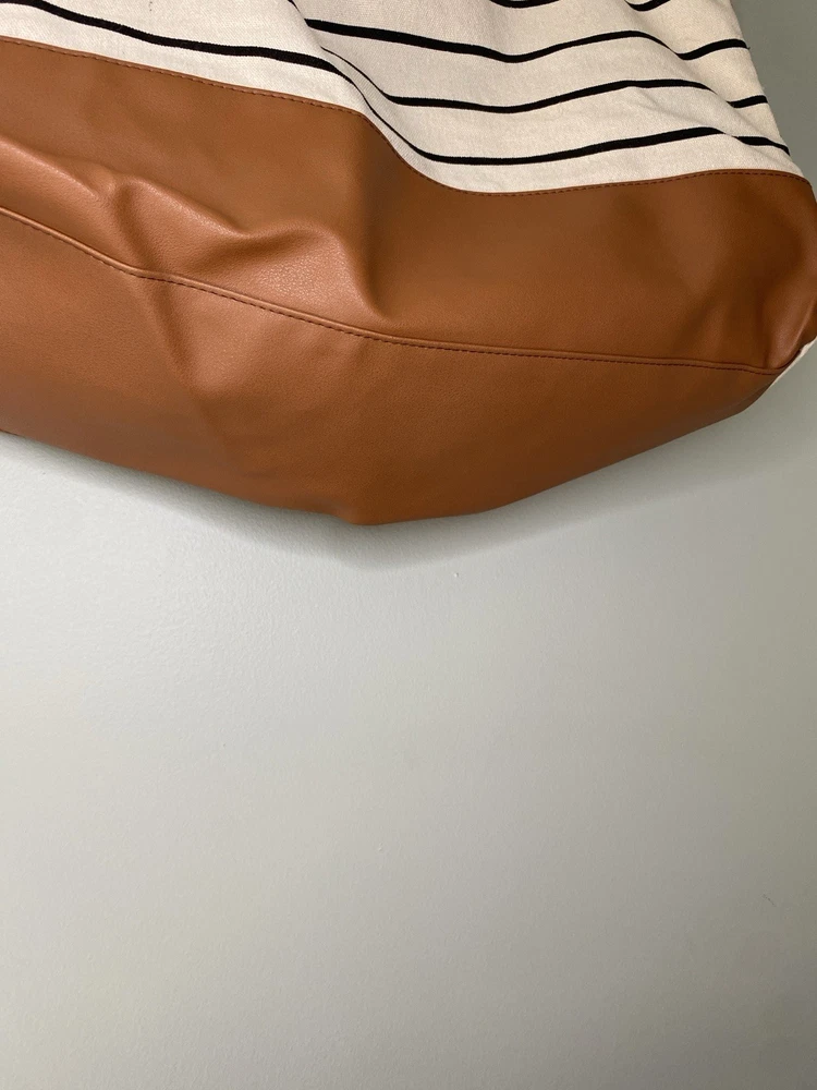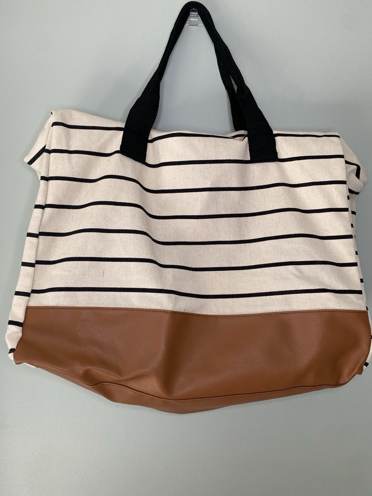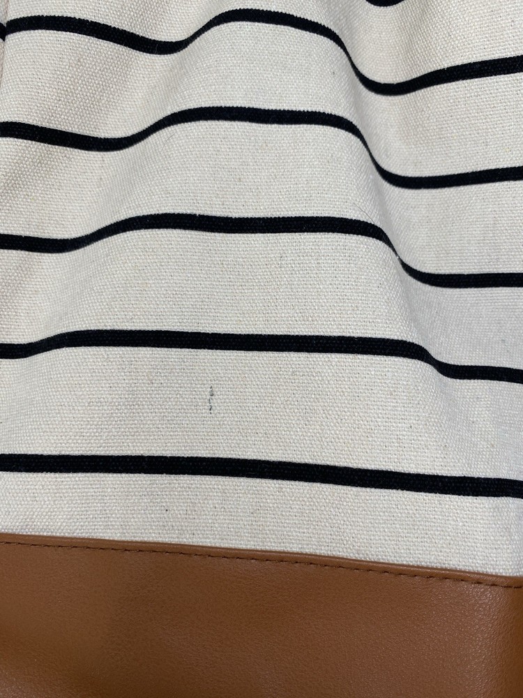 TOMS Striped OVERNIGHTER Tote CARRY-ON Weekender Shoulder Travel Bag DSW Black stripe on cream background with TOMS logo patch. See pictures for minor mark