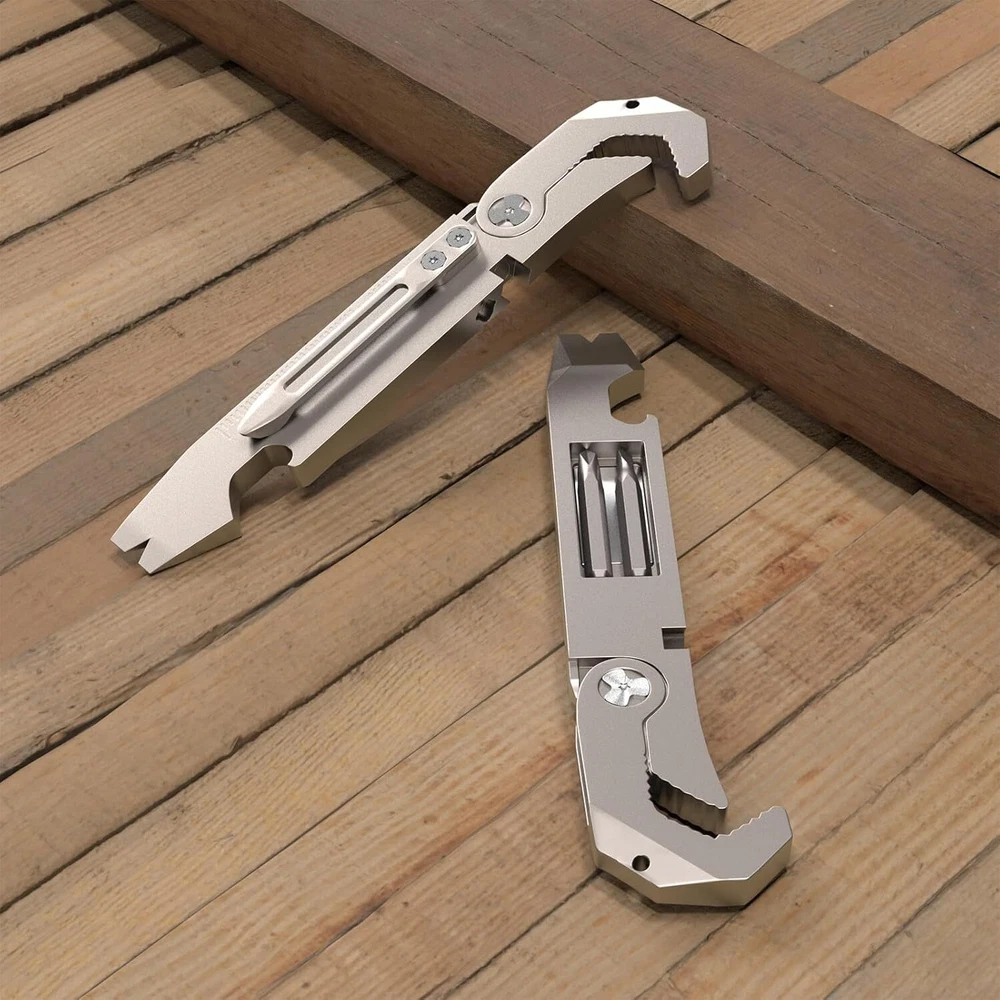 Durable Material: Toovem titanium multitool is made of high-quality titanium, and TC4 titanium alloy has high strength, good corrosion resistance and high heat resistance. It also has a very high for everyday carry and adventures and is easy to grasp with one hand. Multifunction Pry Bar Tool: This titanium alloy TC4 pry bar multifunctional pry bar tool is suitable for outdoor and home use, with a bottle opener, multi-size wrenches, Phillips screwdriver, slotted screwdriver, a measuring ruler, but also reserved for 6.35mm screw hole holders, to bring you great convenience in life. Easy to Carry Dimensions: This EDC titanium is small and delicate, comfortable to touch and compact marvel of design. Size: 0.59x 4.25 x0.33 inch. Weight: 0.11LB. Pry Multitool Has You Covered: Our pocket EDC pry bar is equipped with a keychain for easy carrying and the product itself is equipped with a clip, the clip can be clipped on the shirt pocket, can be carried with you. Extensive Use Keychain Pry Bar: Titanium EDC pry bar is suitable for outdoor camping, barbecuing, picnicking, hiking, traveling, backpacking, is the preferred tool for hiking, camping. Product Description TOOVEM EDC Titanium Pry Bar TOOVEM Titanium EDC Pry Bar This titanium alloy TC4 pry bar multifunctional pry bar tool is suitable for outdoor and home use, with a bottle opener, multi-size wrench, Phillips screwdriver, slotted screwdriver, a measuring ruler, but also reserved for 6.35mm screw hole holders, to bring you great convenience in life. Wide Variety of Uses - Multi-function Pry Bar Tool Ti-Pry Features: Made of high-quality titanium to last a lifetime Corrosion resistant Bottle opener Multi-functional tool Light weight and easy to carry What will you receive? 1* EDC Titanium Pry Bar 1* Keychain The Multitool Pry Bar Screwdriver Choice is Yours BOTTLE OPENER Portable Pry Bar Repair Tool