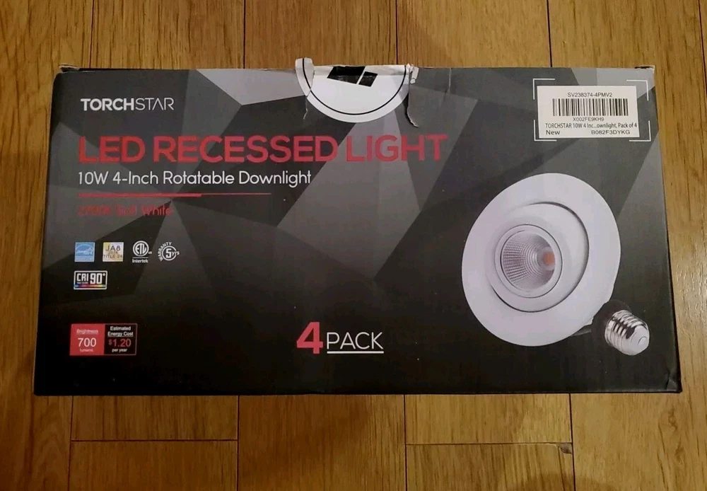 The TORCHSTAR 4" 10W LED Retrofit Recessed Lighting Kit 4-Pack is a set of modern ceiling fixtures designed for indoor use in various rooms such as the kitchen, bedroom, living room, home office/study, and dining room. These downlights feature a white aluminum construction with a matte finish, emitting a bright white light with a color temperature of 5000K daylight and 850 lumens. The lights are dimmable and can be controlled using a light switch, providing flexibility in adjusting the brightness to suit different settings and preferences.