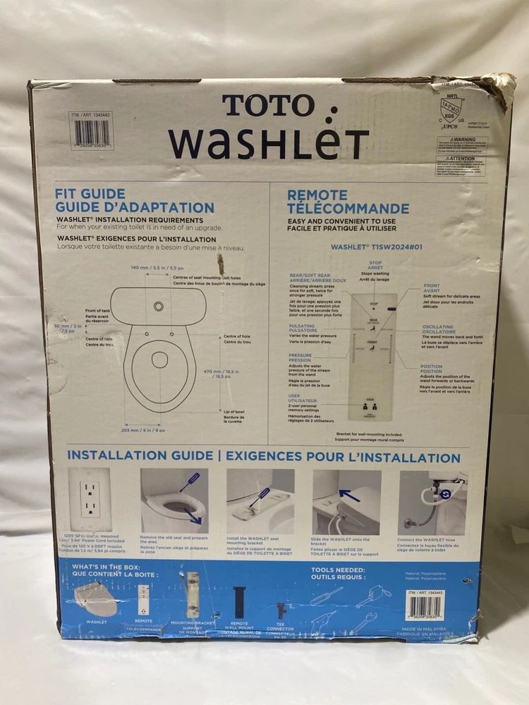 Thank you for your interest in our listing! Please read through our product description thoroughly and ask questions if you are uncertain about the product before bidding/buying. We will do our best to get back to you as soon as we can. All of our products that we sell are guaranteed genuine and authentic. We do not sell knock off, boot legs, or replicas. Check our feedback and buy with confidence. Product Description preowned bidet with missing batteries for remote PAYMENT Payment is required immediately. You cannot complete the transaction unless you pay for “Buy it now” listings. Payment is due within two business days for auction style items. If payment is not received by the 3rd day, we will file an unpaid case with eBay. ALWAYS FAST SHIPPING & HANDLING Fast and free shipping for the conjoining 48 states!! If you are located within Alaska or Hawaii, please contact us before purchasing and we will try and work with you as best we can. We ship out from everyday Monday - Friday until 2PM est. Same day shipping and handling if product is purchased on Weekdays. We only ship the item out to the address that was provided during checkout on eBay. Address changes will not be permitted once the item is checked out by the carrier. FEEDBACKS Please leave me positive feedback when you receive the item. Once positive feedback has been left, I will do the same in return. If you cannot leave a positive feedback for any reason, please contact me and let me know to work things out! I strive for 100% feedback. ALL items are from retail stores which are from a smoke free and a pet free environment!!