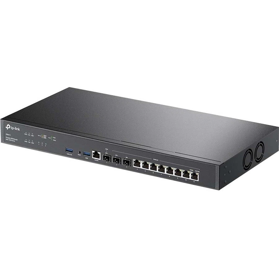 TP-Link Omada VPN Router with 10G Ports (er8411) TP-Link Omada VPN Router with 10G Ports (er8411) International Customers: All electronic products are packaged for sale in the US with US voltage. Package Contents: Omada VPN Router with 10G Ports Power Cord Rack-Mount Kit Quick Installation Guide Environmentally Friendly: Yes Environmental Compliance: Restriction of Hazardous Substances (RoHS) Product Description This item is brand-new, factory sealed. Omada VPN Router with 10G Ports Integrated into Omada SDN: Zero-Touch Provisioning (ZTP)* 3 , Centralized Cloud Management, and Intelligent Monitoring. Centralized Management: Cloud access and Omada app for ultra convenience and easy management. Two 10GE SFP+ Ports: 1 WAN and 1 WAN/LAN 10GE SFP+ ports provide high-bandwidth aggregation connectivity. Up to 10 WAN Ports: Fiber and RJ45 WAN ports with load balance raise the utilization rate of multi-line broadband 1 . Highly Secure VPN: Enterprise-standard SSL/ IPSec / PPTP / L2TP VPN & OpenVPN / L2TP over IPSec VPN are ideal for use across multiple branches and for WFH. Abundant Security Features: Powerful Firewall, DoS defense, IP/MAC/URL filtering, and IP-MAC Binding, and One-Click ALG Activation provide world-class security. Note 1. At least one WAN/LAN port needs to function as a LAN port. 3. Zero-Touch Provisioning requires the use of Omada Cloud-Based Controller. Please go to Omada Cloud-Based Controller Product List to find all the models supported by Omada Cloud-Based Controller. HARDWARE FEATURES Interface 2x 10GE SFP+ Ports (1 WAN, 1 WAN/LAN) 1x 1GE SFP WAN/LAN Ports 8x 1GE RJ45 WAN/LAN Ports 1x RJ45 Console Ports 2x USB Ports (Connecting 4G/3G Modem as WAN Backup) Button Reset Button Power Supply Redundant Dual Power Supplies (100 to 240 VAC, 50/60 Hz) Flash 4MB SPI NOR + 256 MB NAND DRAM 4 GB DDR4 LED PWR, SYS, WAN, LAN, USB, FAN Max Power Consumption 26.36 W (with USB 3.0 connected) 19.12 W (without USB 3.0 connected) PERFORMANCE Concurrent Session 2,300,000 New Sessions /Second 20,000 NAT (Static IP) Upload: 9445.82 Mbps Download: 9449.26 Mbps NAT(DHCP) Upload: 9426.83 Mbps Download: 9426.20 Mbps NAT(PPPoE) Upload: 9413.96 Mbps Download: 9102.01 Mbps NAT (L2TP) Upload: 4230.62 Mbps Download: 4169.53 Mbps NAT (PPTP) Upload: 3933.86 Mbps Download: 3821.97 Mbps 64 Byte Packet Forwarding Rate Upload: 1080 Mbps Download: 1030 Mbps IPsec VPN Throughput SHA1-AES256: 2140.45 Mbps SHA2-AES256: 2080.20 Mbps OpenVPN 1665.64 Mbps L2TP VPN Throughput Unencrypted: 5013.50 Mbps Encrypted: 2274.74 Mbps SSL VPN Throughput 1511.10 Mbps BASIC FUNCTIONS WAN Connection Type Static/Dynamic IP PPPoE PPTP L2TP 6to4 Tunnel Pass-Through Mobile Broadband: 4G/3G modem for backup via USB port MAC Clone Modify WAN/LAN MAC Address 4 DHCP DHCP Server/Client DHCP Address Reservation Multi-net DHCP Multi-IP Interfaces IPv6 WAN Connection VLAN 802.1Q VLAN IPTV IGMP v2/v3 Proxy ADVANCED FUNCTIONS ACL IP/Port/Protocol/Domain Name Filtering Advanced Routing Static Routing Policy Routing Bandwidth Control IP/Port-based Bandwidth Control Guarantee and Limited Bandwidth Load Balance Intelligent Load Balance Application Optimized Routing Link Backup (Timing 5 , Failover) Online Detection NAT One-to-One NAT 5 Multi-Net NAT Virtual Server Port Triggering 5 NAT-DMZ FTP/H.323/SIP/IPSec/PPTP ALG UPnP Security SPI Firewall VPN Passthrough FTP/H.323/PPTP/SIP/IPsec ALG DoS Defence, Ping of Death Local Management Session Limit IP-based Session Limit VPN SSL VPN SSL VPN Server SSL VPN Client 500 OpenVPN Tunnels IPsec VPN 300 IPSec VPN Tunnels LAN-to-LAN, Client-to-LAN Main, Aggressive Negotiation Mode DES, 3DES, SHA1, SHA2, AES128, AES192, AES256 Encryption Algorithm IKE v1/v2 MD5, SHA1 Authentication Algorithm NAT Traversal (NAT-T) Dead Peer Detection (DPD) Perfect Forward Secrecy (PFS) PPTP VPN PPTP VPN Server PPTP VPN Client (32) 6 300 Tunnels (Shared with L2TP) PPTP with MPPE Encryption L2TP VPN L2TP VPN Server L2TP VPN Client (32) 6 300 Tunnels (Shared with PPTP) L2TP over IPSec OpenVPN OpenVPN Server OpenVPN Client (10) 6 110 OpenVPN Tunnels SECURITY Filtering WEB Group Filtering 5 URL Filtering Web Security 5 ARP Inspection Sending GARP Packets 5 ARP Scanning 5 IP-MAC Binding 5 Attack Defense TCP/UDP/ICMP Flood Defense Block TCP Scan (Stealth FIN/Xmas/Null) Block Ping from WAN Access Control Source/Destination IP Based Access Control AUTHENTICATION Web Authentication No Authentication Simple Password 2 HotspotLocal User / Voucher 2 / SMS 2 / Radius 2 External Radius Sever External Portal Sever 2 Facebook Check-In 2 Instagram Follow 2 MANAGEMENT Omada App Yes. Requiring the use of OC300, OC200, Omada Cloud-Based Controller, or Omada Software Controller. Specification Power Description Redundant Power Supply Supported Yes Power Source Power Supply Power Consumption 19.12 W Physical Characteristics Form Factor Rack-mountable Height 1.7" Width 17.3" Depth 8.7" Warranty Limited Warranty 5 Year Interfaces/Ports Number of WAN Ports 8 Total Number of Ports 8 Powerline No Management Port Yes USB Standard USB 3.0 I/O Expansions Total Number of Expansion Slots 3.0 General Information Brand Name TP-Link Marketing Information Future-Proof Your Business with 10G Enterprise Connectivity Omada VPN Router with 10G Ports ER8411 Centralized Cloud Management Seamless integration into the Omada SDN platform Up to 10 WAN Ports Multi-WAN Load Balance raises the utilization rate of multi-line broadband High-Security VPN Enterprise-standard SSL / IPSec / PPTP / L2TP VPN & OpenVPN / L2TP over IPSec VPN Quad-Core 2.2 GHz CPU Enterprise-level hardware design provides maximum performance Two USB 3.0 Ports Available 4G/3G Modem connection for LTE WAN backup Enhanced Security Powerful Firewall, DoS defense, IP/MAC/URL/ Keyword filtering Two 10GE SFP+ Ports High-bandwidth aggregation with 1? WAN and 1? WAN/LAN ports High-Capacity Performance Supports up to 2,300,000 concurrent sessions Dual Redundant Power Supplies Carrier-class reliability for enterpris