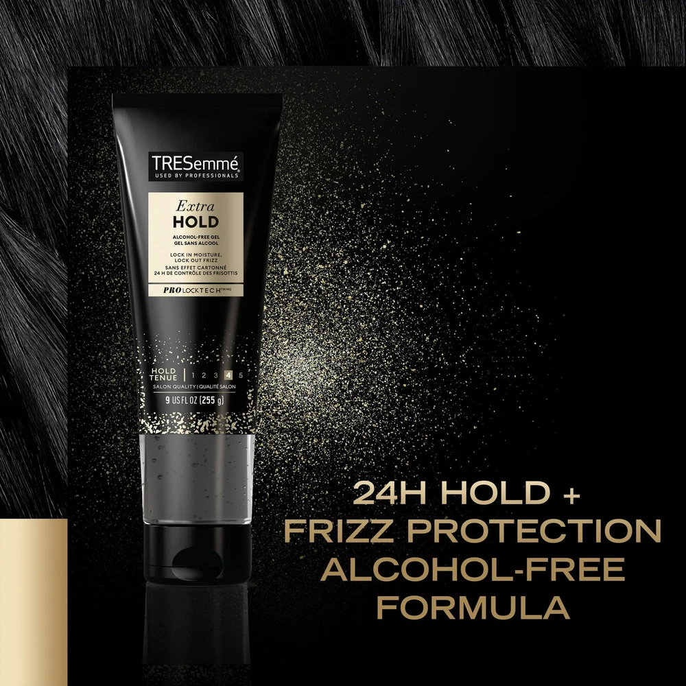 Product Description Tresemme Tres Two, Gel Extra Firm Control, Extra Hold, #4 Hair Styling Gel, 9 Ounce (Pack Of 8) TRESemme Extra Hold Frizz Control Hair Styling Gel, The best styling gel should hold your style without causing a sticky situation. TRESemme Extra Hold Hair Gel delivers all-day-long humidity resistance and keeps your style going strong without ever feeling stiff or sticky. After you put the work into your style, you better lock it in before you lose it. Built for control and ready to be styled, this Extra Hold Gel fights frizz all day long with 24-hour humidity protection, while continuously holding your style in place. This hair styling gel can be used on any hair type, as a curly hair gel or to lock in your wavy styles. Our unique, alcohol-free hair gel formula is great for all hair types and designed to add lasting shine to your style. Step 1: Prep your hair with your favorite TRESemme shampoo and conditioner. Step 2: Start by dispensing a quarter-sized drop of TRESemme Extra Hold Hair Gel into your hands and use fingers to evenly coat towel-dried hair, creating your preferred style. Add more hair styling products as needed. TRESemmé Extra Hold Frizz Control Hair Styling Gel, 9 oz MEGA HOLD HAIR GEL: TRESemmé Extra Hold Hair Gel adds long-lasting shine and firm hold without leaving hair looking sticky or wet ANTI-FRIZZ GEL: This alcohol-free hair styling gel delivers all-day control with humidity resistance to help keep frizz away LOCK IN YOUR STYLE: TRESemmé Extra Hold Hair Gel for women will keep you in control and your hair game strong TREND LED, RIGOROUSLY TESTED: Ingredients in this hair gel are carefully selected to ensure your hair receives the best possible care. We don't test on animals & are PETA Approved HAIR CARE TIPS FROM OUR STYLISTS: Dispense a quarter-size drop into your hands and use your fingers to evenly coat damp hair, creating your desired style. Add more gel as needed EXTRA HOLD HAIR GEL: This gel is a professional-quality clean-feel styling gel that doesn’t dry out your hair. It delivers all-day control with humidity resistance to help keep frizz away NO CRUNCH: Our alcohol-free hair gel adds long-lasting shine and firm hold without leaving hair looking sticky PROTECT HAIR WHILE USING HAIR DRYER, STYLING TOOLS & APPLIANCES: Apply hair gel before using your hair dryer, styling tools & appliances to protect hair from damaging heat while defining your hair style with an extra hold hair gel. VITAMIN B 5 FOR VOLUME AND SHINE: Hair will appear healthy, thicker, with more volume and shine thanks to the Vitamin B 5 in this Extra Hold hair gel. FRIZZ CONTROL IN HIGH HUMIDITY: Frizz control hair gel with extra hold lets you rock your hairstyle and curly hair with confidence without worrying about the humid weather. HOW TO APPLY: Dispense a quarter-sized drop of Extra Hold hair gel into hands. Use fingers to evenly coat towel-dried, clean hair, and work into your preferred style. Add more product if needed. Use your hair dryer or air-dry. MORE THAN HAIR PRODUCTS: TRESemmé is committed to advancing the next generation of female leaders by creating an intentional momentum forward. Find out more about how at #WomenLeadTheWay. Inactive Ingredients Water (Aqua) Vp/Dimethylaminoethy|methacrylateCopolymer PPG-5-Ceteth-20 Trisopropanolamine Oleth-20 Carbomer PVP Dmdm Hydantoin Sorbitol Propylene Glycol Fragrance (Parfum) Peg-12 Dimethicone Olealkonium Chloride Tetrasodium EDTA Panthenol Gelatin/Keratin Amino Acids/Lysine Hydroxypropyltrimonium Chloride Ext. Violet 2 (Ci 60730). Ingredients Water (Aqua), Vp/Dimethylaminoethy|methacrylateCopolymer, PPG-5-Ceteth-20, Trisopropanolamine, Oleth-20, Carbomer, PVP, Dmdm Hydantoin, Sorbitol, Propylene Glycol, Fragrance (Parfum), Peg-12 Dimethicone, Olealkonium Chloride, Tetrasodium EDTA, Panthenol, Gelatin/Keratin Amino Acids/Lysine Hydroxypropyltrimonium Chloride, Ext. Violet 2 (Ci 60730). Active Ingredients NA