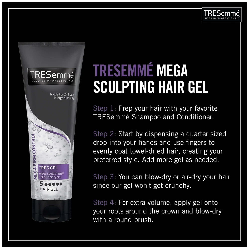 Product Description Tresemme Tres Two, Mega Control, Hair-Gel, for 24-Hour, Frizz Control #5, 9 Ounce (Pack Of 12) TRESemmé Mega Frizz Control Hair Styling Gel, Need a styling gel that delivers mega hold without feeling stiff or sticky? TRESemme Mega Control Hair Gel provides all-day resistance to humidity and keeps your style going strong without crunchy stiffness. After you put the work into your style, you better lock it in before you lose it. Sprays work best to lock in some styles, but when you're aiming for a sleek, tight look, you should use a styling hair gel for extra hold and humidity control. Built for control and ready to be styled, TRESemme Mega Control Hair Gel is an anti-frizz gel, giving you all-day hold with built-in 24-hour humidity protection. This mega control hair gel is perfect for slicking, shaping, or sculpting hair for that perfect look. Our unique, alcohol-free hair gel formula is great for all hair types and designed to keep your hairstyle on lock without leaving hair looking wet or feeling sticky. Step 1: Prep your hair with your favorite TRESemme shampoo and conditioner and hair styling products. TRESemmé Mega Frizz Control Hair Styling Gel, 9 oz MEGA FIRM STYLING HAIR GEL: TRESemmé Mega Control Hair Gel is a styling gel that adds long-lasting shine and mega hold to your hair for all-day control ANTI-FRIZZ GEL: This alcohol-free hair styling gel delivers all-day control with humidity resistance to help keep frizz away MAXIMUM HOLD: TRESemmé Mega Control Hair Gel is a stiff hair gel that locks in your style without ever looking sticky or wet TREND LED, RIGOROUSLY TESTED: Every ingredient is carefully selected to ensure your hair receives the best possible care. We do not test on animals and our hair products are PETA-approved HAIR CARE TIPS FROM OUR STYLISTS: Dispense a quarter-size drop into your hands and use your fingers to evenly coat damp hair, creating your desired style. Add more gel as needed FRIZZ FREE: Formulated with coconut oil, this formula gives all-day hold and 24-hour humidity resistance for resilient styles ALL-DAY HOLD: Level 5 hold, our strongest hold hair gel, is Infused with coconut oil. Achieve moisturized hair without compromising on hold CRUELTY-FREE: TRESemmé prohibits animal testing for our hair products and the ingredients used in them, anywhere in the world DO IT WITH STYLE: With professional quality hair products like our Mega Control Alcohol-Free Gel, you can confidently create your personal style Super firm control. Resistance To Lock Out Frizz And Lock In Style All Day Holds For 24 Hours In High Humidity Mega Firm Control For All Hair Types Product Benefits Humidity Resistant, Frizz Control Hair Type Curly Material Type Free Mineral Oil Free, Sulfate Free, Alcohol Free, Aluminum Free, Formaldehyde Free Scent Unscented Liquid Volume 9 Fluid Ounces Ingredients WATER (EAU), VP/DIMETHYLAMINOETHYLMETHACRYLATE COPOLYMER, PPG-5-CETETH-20, PHENOXYETHANOL, TRIISOPROPANOLAMINE, OLETH-20, CAPRYLYL GLYCOL, CARBOMER, PVP, SORBITOL, FRAGRANCE (PARFUM), PROPYLENE GLYCOL, PEG-12 DIMETHICONE, DISODIUM EDTA, PANTHENOL, COCOS NUCIFERA (COCONUT) OIL, BENZYL ALCOHOL, CITRONELLOL, GERANIOL, HEXYL CINNAMAL, LIMONENE, LINALOOL, EXT. VIOLET 2 (CI 60730).