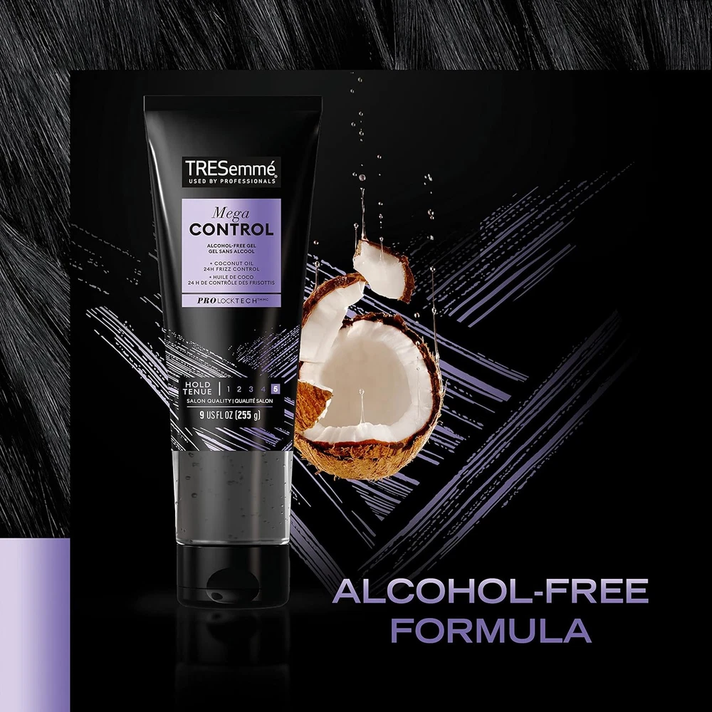 Product Description Tresemme Tres Two, Mega Control, Hair-Gel, for 24-Hour, Frizz Control #5, 9 Ounce (Pack Of 18) TRESemmé Mega Frizz Control Hair Styling Gel, Need a styling gel that delivers mega hold without feeling stiff or sticky? TRESemme Mega Control Hair Gel provides all-day resistance to humidity and keeps your style going strong without crunchy stiffness. After you put the work into your style, you better lock it in before you lose it. Sprays work best to lock in some styles, but when you're aiming for a sleek, tight look, you should use a styling hair gel for extra hold and humidity control. Built for control and ready to be styled, TRESemme Mega Control Hair Gel is an anti-frizz gel, giving you all-day hold with built-in 24-hour humidity protection. This mega control hair gel is perfect for slicking, shaping, or sculpting hair for that perfect look. Our unique, alcohol-free hair gel formula is great for all hair types and designed to keep your hairstyle on lock without leaving hair looking wet or feeling sticky. Step 1: Prep your hair with your favorite TRESemme shampoo and conditioner and hair styling products. TRESemmé Mega Frizz Control Hair Styling Gel, 9 oz MEGA FIRM STYLING HAIR GEL: TRESemmé Mega Control Hair Gel is a styling gel that adds long-lasting shine and mega hold to your hair for all-day control ANTI-FRIZZ GEL: This alcohol-free hair styling gel delivers all-day control with humidity resistance to help keep frizz away MAXIMUM HOLD: TRESemmé Mega Control Hair Gel is a stiff hair gel that locks in your style without ever looking sticky or wet TREND LED, RIGOROUSLY TESTED: Every ingredient is carefully selected to ensure your hair receives the best possible care. We do not test on animals and our hair products are PETA-approved HAIR CARE TIPS FROM OUR STYLISTS: Dispense a quarter-size drop into your hands and use your fingers to evenly coat damp hair, creating your desired style. Add more gel as needed FRIZZ FREE: Formulated with coconut oil, this formula gives all-day hold and 24-hour humidity resistance for resilient styles ALL-DAY HOLD: Level 5 hold, our strongest hold hair gel, is Infused with coconut oil. Achieve moisturized hair without compromising on hold CRUELTY-FREE: TRESemmé prohibits animal testing for our hair products and the ingredients used in them, anywhere in the world DO IT WITH STYLE: With professional quality hair products like our Mega Control Alcohol-Free Gel, you can confidently create your personal style Super firm control. Resistance To Lock Out Frizz And Lock In Style All Day Holds For 24 Hours In High Humidity Mega Firm Control For All Hair Types Product Benefits Humidity Resistant, Frizz Control Hair Type Curly Material Type Free Mineral Oil Free, Sulfate Free, Alcohol Free, Aluminum Free, Formaldehyde Free Scent Unscented Liquid Volume 9 Fluid Ounces Ingredients WATER (EAU), VP/DIMETHYLAMINOETHYLMETHACRYLATE COPOLYMER, PPG-5-CETETH-20, PHENOXYETHANOL, TRIISOPROPANOLAMINE, OLETH-20, CAPRYLYL GLYCOL, CARBOMER, PVP, SORBITOL, FRAGRANCE (PARFUM), PROPYLENE GLYCOL, PEG-12 DIMETHICONE, DISODIUM EDTA, PANTHENOL, COCOS NUCIFERA (COCONUT) OIL, BENZYL ALCOHOL, CITRONELLOL, GERANIOL, HEXYL CINNAMAL, LIMONENE, LINALOOL, EXT. VIOLET 2 (CI 60730).