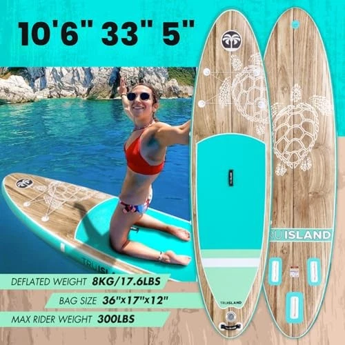 Return Policy Fast Delivery Trusted seller TRUISLAND Inflatable Paddle Board, Stand Up Paddle Board with Backpack, Non-Slip Thickened Deckpad, Waterproof Phone Case, Leash, Paddle, Hand Pump Product Description Design inspiration:Each board was designed to be a premium board constructed with quality in mind. Our designs were made in collaboration with passionate marine focused FL key artist. Many of our designs have marine life displayed on the boards and were originally a original canvas painting before we added them to our boards. We want our boards to be functional art pieces and inspire many to love our oceans as much as us Thickened deckpad:We used premium 5mm deckpad foam to ensure ultimate comfort and durability for our boards.Relax the feet to make body more comfortable and not too painful to fall on the board. Most company’s use much thinner deckpad but this is a testament to our quality and not cutting corners in every step of our board design Stand Up Paddle Board Size: The Board model is 10.6 ft x 33 inches wide x 6 inches thick. It weighs only 19lbs and it provides a large, wide platform for stability on the water along with the ability to support riders up to 300 lbs.Inflatable paddleboards are great fun and a beach essentials when touring with pets and kids. We recommend inflating the board to a pressure of 13 psi up to a maximum of 15 psi for use in different environments such as ocean, lake, ponds, rivers and pool. Complete accessories:This package includes the ISUP, adjustable 100% aluminum paddle with fiberglass blade , high pressure pump, backpack-style carry bag with plenty of storage, 10ft coil leash, 3 removable easy- nylon fins , and a repair kit.The detachable fin provides greater traction, overall speed and control to ensure the stability Worry-free after-sales service:If you have any questions, our professional team will help you solve them in a timely manner. Choose our paddle board to bring you a comfortable, safe, and fashionable experience. In addition, we provide a two year warranty service Shipping Returns Payment Shipping Shipping is FREE to all addresses other than APO/PO boxes in the lower 48 states. All our stock ships from US-based warehouses. Shipped via USPS or UPS (depending on location and package weight) Unless stated otherwise, all orders will ship within 24-72 hours of your payment being processed. Check our feedback to see the great reviews of FAST shipping we offer. Returns Seller does not accept returns Payment We currently accept payment via eBay managed payments only. Once payment is cleared, we will dispatch your shipment within 1-3 business days. Please refer to the "Shipping" tab for more information regarding shipping speed to your destination.