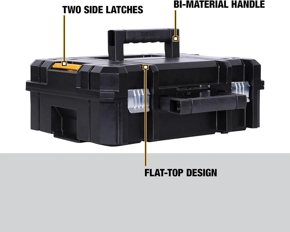 Flexible platform of the tool storage allows different combinations All units of the tool chest can stack on top of the other, connected with durable side latches Bi-material handle on top of each portable tool chest is designed for easy and comfortable lifting Heavy-duty metal latches for rust resistance A rugged and durable tool box, the TSTAK Deep Box easily fits cordless and corded power tools as well as accessories and attachments with ease. Ultra durable and ultra portable, the TSTAK Deep Box is the professional alternative to the standard "tool box". Part of the TSTAK storage system, all TSTAK storage boxes and containers can easily be stacked and attached for quick organization and storage in the shop, or on the job site.