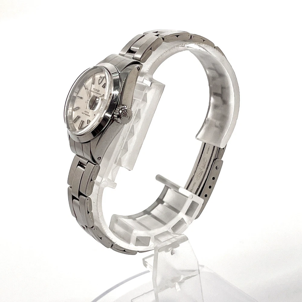 From 1975 Vintage TUDOR by ROLEX Princess Oysterdate for women Ref. 7616/0 automatic watch 25mm (not water resistant) reference 7616/0 with automatic movement 25mm stainless steel case with a bezel on top. The watch is running, although I am not aware of any service history. 25mm case approximately without crown with central seconds hand. The hour hands and dial have some marks or stains noticeable in the photos The stainless steel case has some marks and wear. Although preserved for years of use, The crown is original The Rolex logo beautifully to the watch. The crystal is original plastic but has some marks and bumps as seen in the picture The dial or face with some marks or stains as seen in the picture. Bracelet with Rolex symbol and strap lugs 266 as seen in the photos. PLEASE NOTE: While our vintage clocks may be working at the time of listing, we in no way guarantee their accuracy. They may need service at some point. Sold as seen. Shipping price is due to DHL shipping only, Shipping is done only via DHL within 5 business days after payment is made, it takes 15-30 days to reach destination, buyer pays customs fees, packages may be checked at customs and generate taxes. Returns are accepted within 30 days, buyer covers return costs