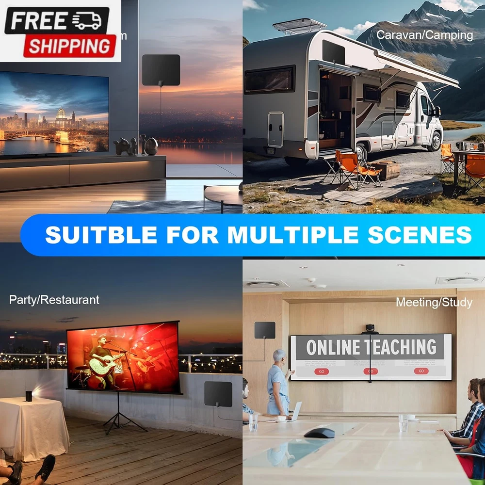 TV Antenna Indoor Long Range 900 Miles, Supports 4K 1080P Smart TV Signal Reception with Signal Amplifier 16Ft HDTV Coax Cable Enjoy More Tv antenna for Local Channels: Get more channels by antenna for smart TV, receive local broadcasting, ABC, CBS, NBC, CPS, FOX, CW, ION, UMAS, etc HD Antenna for TV: Our digital TV antenna indoor adopts an upgraded Smart IC Chip, receives TV broadcasts including 4K, UHD and 1080 HDTV for the hd picture 16FT Coax Cable: Coaxial cable is composed of a solid center conductor, dielectric insulation, three aluminum shielding layers, and a durable outer layer. so that you will never lose signal or suffer distortion even in bad weather Easy to Install: Simply plug the coaxial cable from your digital indoor HDTV antenna into the ANT/IN connector on the back of your TV, Point the TV antenna in the direction of your local TV tower and scan for channels After-Sales Service: Our package includes a TV antenna, amplifier signal booster, manual. If you have any questions about the product, Our 24 online support will assist with any issues or concerns Product Description Shipping Fast shipping is very important for us. Our standard US shipping service is FREE. Your order will be shipped within 2-3 business days upon full payment received. Your order will be delivered within 2-3 business days after the handling time. We only ship to the confirmed PayPal address. We reserve the right to cancel any order for any reason at any time. We are not responsible for undeliverable addresses. Returns and payment We offer a 30 days return policy from checkout winning date. We allow only PayPal as payment method FeedBack Your feedback very important to us, after you get your package and you are satisfied with our service please leave us positive feedback If you have any problem with your order / any questions please before leave any type of feedback For any questions, using eBay contact system Please visit our eBay store to check out other items for sale! Thank you for shopping at our store.