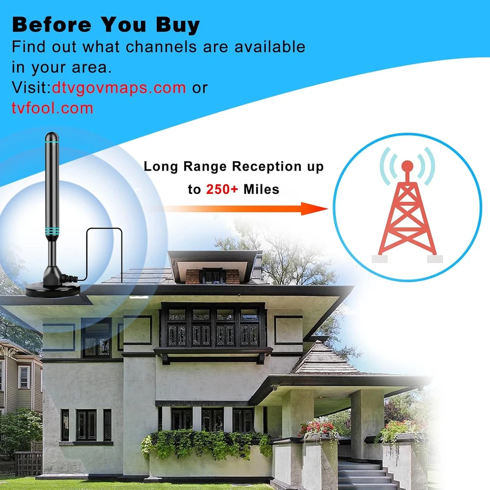 Store New Arrivals Add to Favorite View Feedback Contact TV Antenna-Tv Antenna Indoor,Tv Antenna for Smart TV Indoor,Tv Antenna for Local Channels,Support 4K 1080P with Signal Booster Antenna TV Digital HD Indoor & Outdoor Description Number of Items 1 Antenna Television Color Black Product Dimensions 6.97 x 3.07 x 2.13 inches Item Weight 12 ounces 【TV Antenna Indoor-Enjoy More Free Programs】The digital antenna for TV can receive hundreds of HD TV channels, including ABC, CBS, NBC, FOX, etc. You can watch news/movies and any your favorite programs; Compared to network TV and traditional cable TV, all the programs are free, so you don't have to pay a huge fee for watching TV. 【Full HD Crystal TV & Upgraded Smart IC Chip】Our smart HD antenna for TV indoor adopts latest smart IC chip, which can receive signals and filter out cellular and FM signals. The HDTV antenna indoor can receive broadcasts including 4K, UHD and 1080 HDTV with highest-quality picture and sound, and access to more free broadcast TV signals with enhanced gain, range and frequency performance. 【 Long Range Reception】The digital TV antenna with signal Regulators can receive TV signals up to Long Ranges, which easily amplify information and get the best reception, when you put it anywhere in your home’s every area. 【NOTE】When the antenna is installed, if it can only receive a small number of channels or no channels, you need to take the following two steps. First, you need to adjust the antenna to the right position. Then, remember to re-scan for channels after moving the antenna. For more information, you can visit "dtv gov maps", and get useful information. 【Easy to Install】Connection Method: (1) Connect to 'ANT IN' on the back of any digital TV. (2) Place antenna in an optimal position, usually window or on wall. (3) Scan channels by selecting 'Menu' then 'Channel Search' and you are ready to enjoy your TV programs. NOTE: Please make sure to switch the regulator to the ‘short rang’ in case your house is very close to the broadcast tower. (within 35 Miles) Product Description ABOUT US We offer the best prices around on high quality products. Our E-store includes media such as books, movies, music and games while offering electronics, toys, sporting apparel, clothing, tools, general home, garden items and more. SHIPPING We are always working hard to ensure your package arrives as soon as possible. Please understand that some factors like weather, high postal traffic, and the performance of shipping companies are outside of our control. We offer free shipping to the lower 48 states and ship within 2 business days of payment, usually sooner. We do not accept P.O. Boxes. Please provide a physical address. For shipping outside of the continental USA, we only use eBay's Global Shipping Program.The item is shipped to KY and then sent to the rest of the world. International customers are responsible for all duties and taxes. Continue to check out in order to calculate costs for shipping the item to your country. Messages regarding eBay's Global Shipping Program MUST be directed at eBay EXCLUSIVELY. RETURNS We offer a 30-Day Return Policy on items which you are not completely satisfied with. You have the option for a full-refund or an exchange of the item. No returns are available on items shipped outside of the USA. PAYMENT We accept PayPal. CONTACT US This page content is yet to come Please ad us to your favorite seller and visit again later Thank You CUSTOMER SATISFACTION We try our very best to make sure every customer is completely satisfied. If there's a problem, message us! We're happy to help. WE ACCEPT Copyright © 2021 AutoDS. | All Rights Reserved