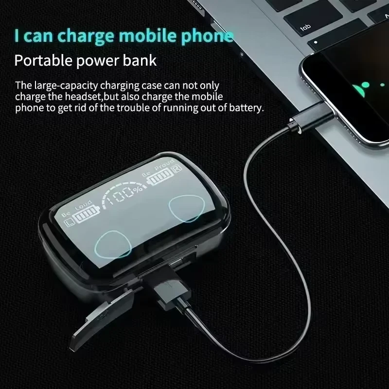 Bluetooth version: V5.1 Noise reduction version: CVC8.0 Working distance: connect within 10 meters Single ear capacity: 50 mA Charging compartment capacity: 3500mAh Automatic boot: support Automatic pairing: support Endurance time: about 220 hours in total (need to be used with the charging compartment) Talking time: about 180 hours in total (need to be used with the charging compartment) Headphone charging: about 40 times Magnetic function: magnetic absorption and charging Charging compartment input current: 5V 1A Control method: touch operation Products Accessories Lists: 2* Bluetooth Earphones 1* Charging Case 1* USB Cable 1* User Manual 2* Earphone Cups(L,M Size)
