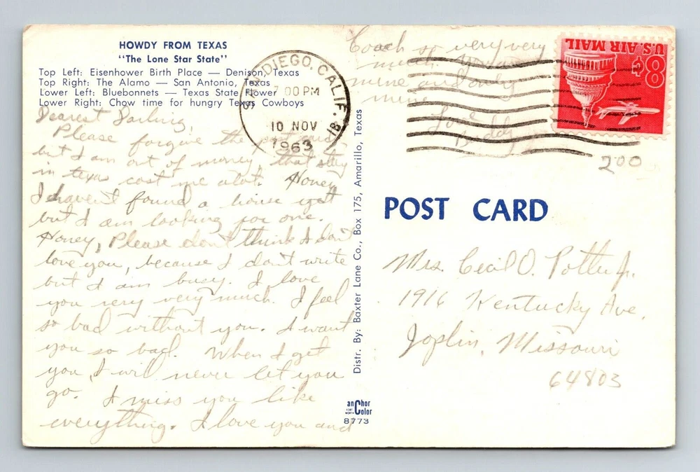 Unit of Sale: Single Unit Country: USA Subject: Cities & Towns Country/Region of Manufacture: United States Original/Licensed Reprint: Original City: Texas Era: Chrome Theme: Cities & Towns Continent: North America Region: Texas Postage Condition: Posted Type: Printed (Lithograph)