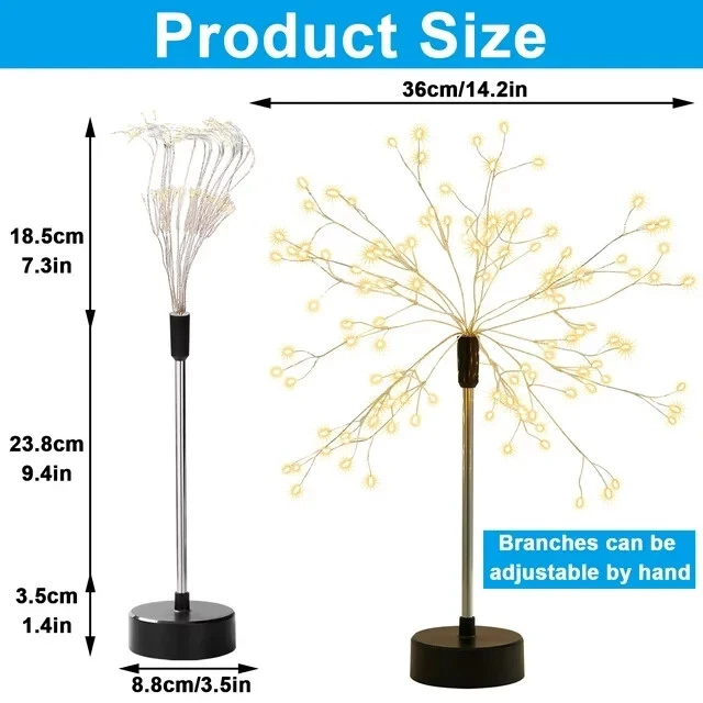 - Brand New - Never Used - Questions: Feel free to ask any Questions - BOX: Never Opened - DESCRIPTION:* Flexible DIY Firework Starburst Shape: This LED firework table lights with 20 branches 120 LEDs, the 20 flexible branches copper wires are easy to be bent into any shapes you want to get, such as bouquets, fireworks, star shapes. * * Remote Control: With 8 functions remote controller, the remote control also allows you to set times, 6 hours on and 18 hours off automatically. Choose the model you like, starburst table lights' effective receiving range is 10 meters. * * Dimmable: Long press the remote control button "DIM+" or "DIM-" to adjust the brightness of the table lights. * * Both for Indoor and Outdoor Use: The LED fairy lights are IP67 waterproof, and the battery case is IP44 waterproof, if use it outdoor, please do not put the base in the water. * * 8 Lighting Modes: 8 different modes (Combination/ In Wave/ Sequential/ Slo Glo/ Chasing/ Slow fade/ Twinkle/ Steady on), This gorgeous string lights can be used for decorating the living room, bedroom, corridor, stair, courtyard garden, tent, bar, windows, Christmas tree, Christmas, party, wedding, and other celebration occasions. Also suitable for outdoor use! Decorate any celebrating occasions with these amazing twinkle lights, which will create a festive and romantic atmosphere! * * Two Power Way: The firework table lights need USB or 3 AA batteries, (battery not included). battery light gets rid of the socket control, you can put it wherever you need it. * * Energy Saving and Long Lifespan: The starburst table lights Christmas uses the low-calorie,cold-light bulb, which does not generate heat for a long time and consumes very little power. The light life is over 10,000 hours. - OFFERS: Reasonable offers are considered, LOWBALLERS, Best price and Lowest askers will be ignored - all sales final/no refunds/ no exchanges/ no returns - Disclaimer: I do not own the brand's trademarks, logos, pictures, or products posted. I do not intend to infringe on copyright. I find such content available on the internet. Contents are considered fair use. -Lapalife LED Firework Table Lamp, USB Battery Powered Desk Lamp for Bedroom 8 Modes Dimmable Starburst Fairy Lights Spirit Tree with Remote for Party Christmas Decoration
