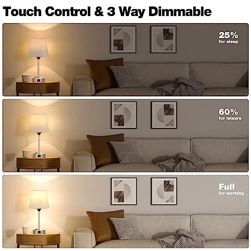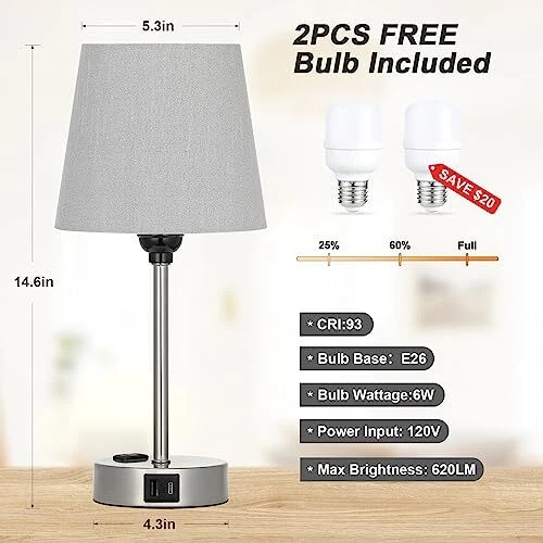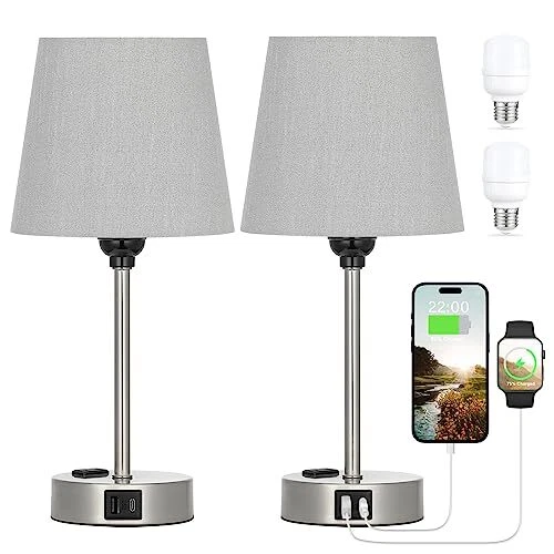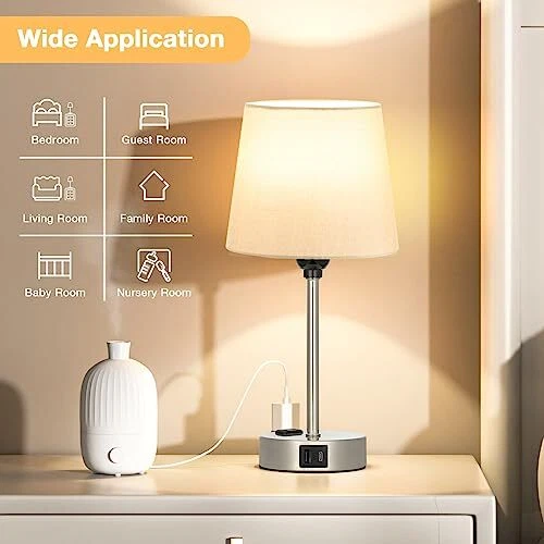 Menu 1. We require immediate payment. 2. We currently accept payment via eBay managed payments only. 3. Once payment is cleared, we will dispatch your shipment within 1-3 business days. Please refer to the "Shipping" tab for more information regarding shipping speed to your destination. Table Lamps for Bedrooms Set of 2 Bedside - Nightstand Bedroom Lamp with USB C Port and AC Outlet Charging, Dimmable Touch Small End Side Lamp, Grey Night Stand Light for Kid/Guest Room/Living Room Product description Modern Grey Lamp for Room Decor - The bedroom nightstand lamp is equipped with tactile features, 3 sets of brightness, 3 powers to charge, very handy for multiple use. And the small bedside lamp is modern and simple, the classic fabric grey lamp shade emitted a warm and comfortable glow, providing you with a relaxed and comfortable atmosp. Perfect gift for Father's Day, birthday gift, home warming gift for friends, families, co-workers. 3 In 1 USB-C & USB Ports & AC Outlet - The side table lamp for bedroom builts USB A+C port (5V/2.1A) and AC outlet(5V/2.1A) for charging in the nickel silver base. The bedrooms lamp set of 2 allows you to charge 6 devices at the same time, such as Phones, Ipad, Airpod, Echo, etc. You can easily charge your phone while enjoying the warm and cozy ambiance of the nightstand lamp. The charging station will operate whether the usb lamp is on or off. Enjoy the Touch Control Bedside Lamp - With the touch feature, the dimmable touch lamp for nightstand is easily operated, quickly turn on/ off the lamp or change the brightness by tapping the silver lamp base, especially friendly for the elderly, children, nursery, say goodbye to the complicated switches or buttons. Upgraded 3-Way Dimmable Nightstand Lamp - The night stand lamp has three levels of brightness (Low/Middle/High), it can meet your various needs perfectly. The lowest brightness is great for a night-light, ideal for relaxing, yoga, meditation,etc. And the highest brightness gives off a fair amount of light for work/study. In addition, you will receive 2PCS $20 E26 LED bulb for free, which helps save your time and money on buying an extra light bulb for the small night lamp. ?? WORRY-FREE Shopping - Reliable quality and after-sales support to make sure you have a great shopping experience. bed side lamp components are UL certified, safe and practical. If you have any questions about using the end table lamp, please contact the seller, your message will be answered within 24 hours and will help solve your problem smoothly. PLEASE MESSAGE US IF YOU HAVE ANY OTHER QUESTIONS, AND MANY THANKS FOR READING ALL OF THIS. Copyright ©#. All Rights Reserved.