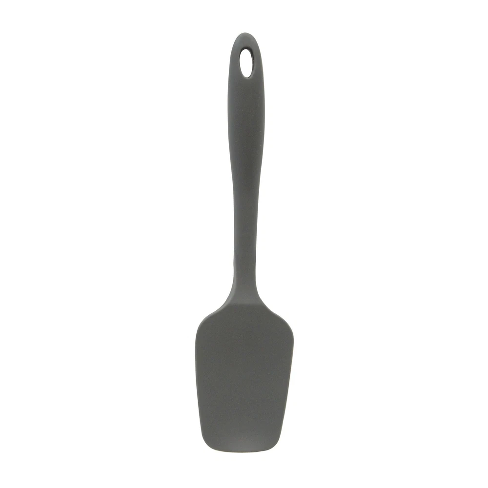 This TableCraft 10.25" spoon‐spatula is made of heat‐resistant silicone with a nylon core. These spatulas will not scratch cookware and are odor and stain resistant. The blade on this spatula is 3.5" long and is 2.5" wide at the top and 2" wide at the tip. Model #: H3910GY Silicone with Nylon Core BPA Free FDA Grade Materials Heat Safe Up to 400°F / 204°C Odor & Stain Resistant Non Abrasive For Use with Any Pot or Pan Comfortable Stay‐Cool Handle Easy to Clean Dishwasher Safe Peggable Holes for Easy Storage Conveniently Packaged for Cash & Carry "