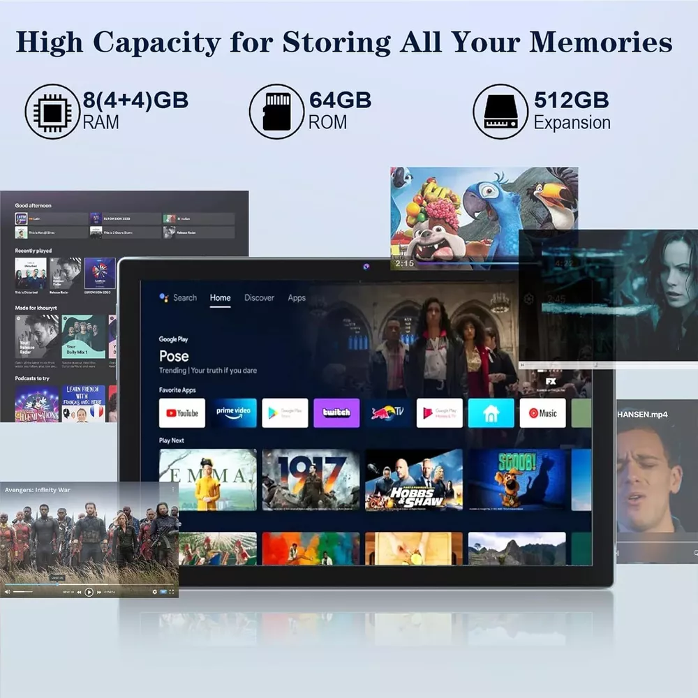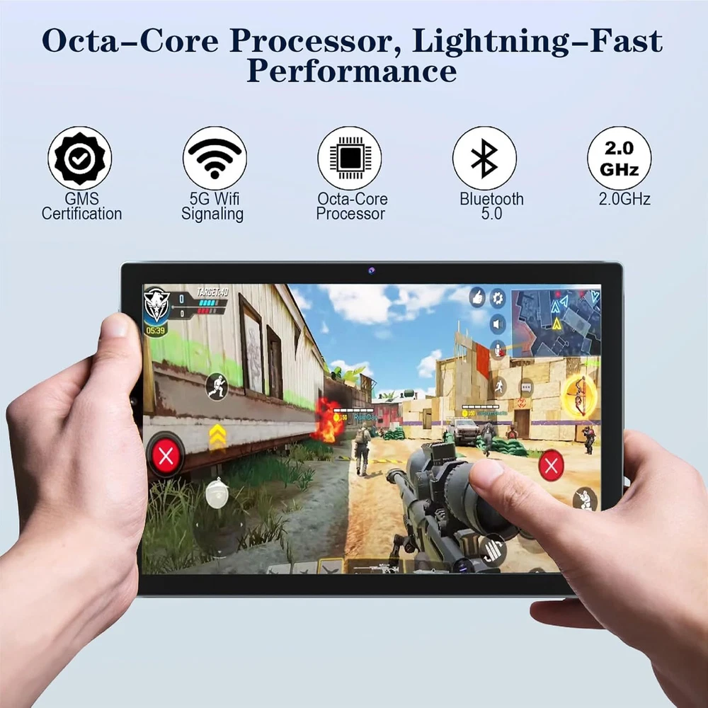 Tablet 10.1 inch Android Tablet 13 2024 Octa-Core Processor Tablet, 8GB(4+4Expension) 64GB Storage 512GB Expand, 5GWiFi & Bluetooth 5.0, Drop-Proof Case, Dual Camera, Long Life Battery, GMS Tablet Product Details Brand: Trayoo Model Name: K13 Memory Storage Capacity: 64 GB Screen Size: 10.1 Inches Display Resolution Maximum: 1280*800 Pixels 【2024 New Upgraded Powerful Tablet】The android 13 Tablet is equipped with a latest 2.0 GHz octa-core CPU that performs 30% FASTER than other brands, provide fast application launch and smooth gaming experience, Split screen feature allows you to take notes and watch videos at the same time, GMS Certified android tablet allow you to download many popluar apps from Google Play Store easily, Perfect for working, reading, studying and entertainment 【Stayed Connected with 5G WiFi & Bluetooth 5.0】Trayoo 10 inch tablet use newest 5G WiFi technology, delivering high-speed and stable network connections, you can use the android tablet 10 inch smoothly anywhere. Bluetooth 5.0, provides faster transfer speeds, your photos, videos, and music transfer become easier and faster 【Up to 580GB Storage & 5000mAh Long Battery Life 】The android 13 tablet comes with (4+4Expansion)GB RAM, 64 GB ROM and can up to 512GB of expandable microSD card storage for even more space. This 10 inch tablet android contains 5000mhA battery supporting about 10hrs of continuous use, Providing a long-lasting reading and watching times, Nice android tablets for business trip or travel use 【Dual Speakers & Camera】The tablet android features with dual speakers and powerful audio, the tablet's stereo effect allows you to be completly immersed while playing a game or watching a TV movie, bring you better entertainment experience. With front-facing 2.0 MP and Rear 5.0 MP dual cameras, convenient for capturing beauty in different directions and sharing great monment with friends and family 【Tablets with Protector Case】The Android Tablets comes with a drop-proof protector case, so you don't have to spend money looking for a case for your tablet 10 inch. Made of TPU material, protecting the tablet well from scratches, drops and shocks, Perfect Choice for Everyday Use
