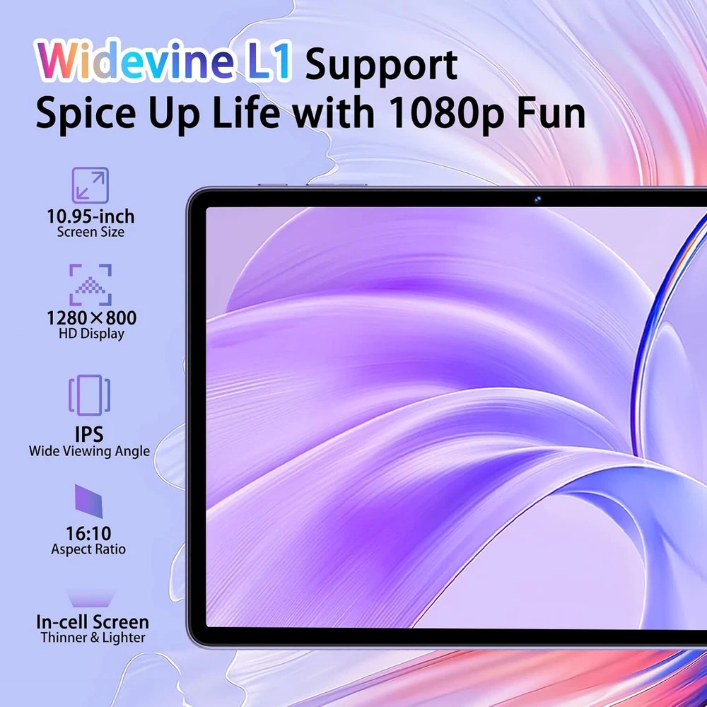 Tablet 11 inch Android 14 Tablets, 24GB+256GB+1TB Expand, Widevine L1 Purple Product Details Standing screen display size: 10.95 Inches Screen Resolution: 1280 x 800 pixels Max Screen Resolution: 1280*800 Pixels Processor: 2 GHz Chipset Brand: MediaTek Card Description: Dedicated Wireless Type: 802.11ax Brand: SKYEGG Model Name: K15 Memory Storage Capacity: 256 GB Screen Size: 10.95 Inches Display Resolution Maximum: 1280*800 Pixels LATEST ANDROID 14 TABLET + GMS CERTIFIED: The SKYEGG K15 tablet comes with the latest Android 14 operating system, offering more personalisation options and new features. Also it is GMS certified, so you can access lots of apps and services 24GB RAM+256GB ROM+1TB EXPAND: The K15 Tablet has 24GB RAM and 256GB ROM, supports 1TB of expanded storage (Micro SD/TF card not included). The memory lets you store more books, music, pictures, videos and games. No more worrying about running out of memory 11" IPS INCELL SCREEN: The K15 Android Tablet features an 11-inch IPS display with a resolution of 1280x800, which delivers more lifelike images, finer details, and more responsive touches, giving you immersive images and support for split-screen functionality SUPPORT WIDEVINE L1: The K15 tablet supports Widevine L1, which efficiently decodes FHD and Ultra FHD video so you can enjoy high-quality video playback on more than 30 of the major video apps around the world, including Netflix, Prime Video and YouTube, etc 8000MAH ULTRA-LONG LIFE: SKYEGG 11 inch tablet built-in a high capacity 8000mAh battery, which is larger than other tablets and will last you all day. Equipped with USB Type-C port + independent 3.5mm headphone jack to meet various needs DUAL CAMERAS + RICH FEATURES: K15 Tablet comes with a 5MP front camera and a 13MP rear camera for optimised image processing. Face recognition, wireless projection, child protection, screen recording and other rich features make your tablet more convenient