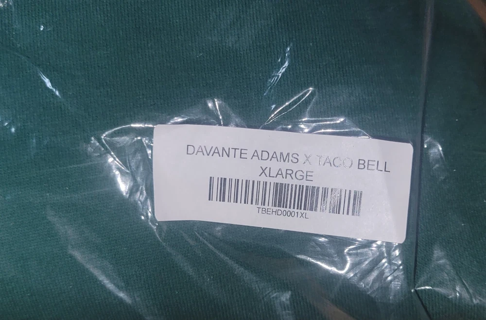 This limited edition Taco Bell x Davante Adams hoodie is a must-have for any fan of the popular fast food chain or NFL Jets fan. Crafted with high-quality materials, this hoodie is perfect for everyday wear and is sure to become a staple in any wardrobe. With the Taco Bell brand name prominently displayed, this hoodie is a great addition to any collection. Don't miss your chance to get this exclusive item in size XL.
