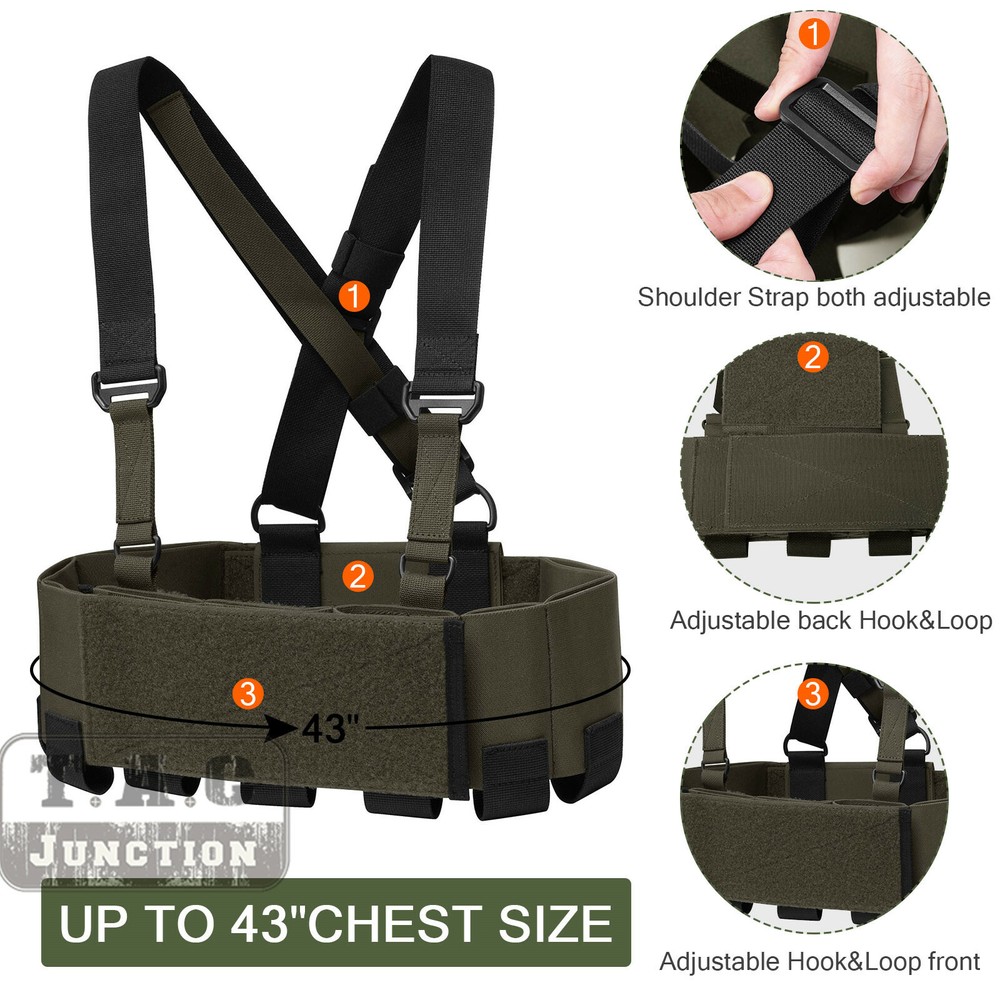 This chest rig is a game-changer—lightweight yet sturdy, with plenty of elastic storage for mags, radios, and gear. The adjustable cummerbund and straps ensure a snug fit, and the concealed design keeps everything secure without bulk. Perfect for range days or tactical use, it holds everything you need without weighing you down. Highly recommend for its versatility and comfort!